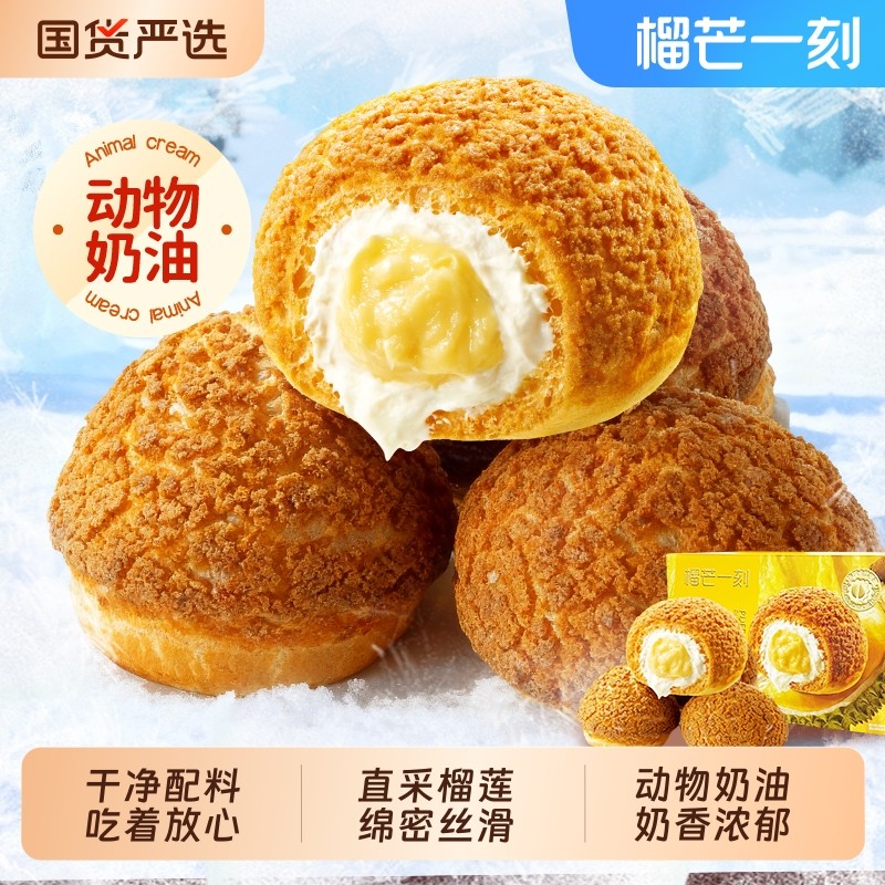 榴芒一刻榴莲泡芙休闲零食小吃冰淇淋动物奶油泡芙球甜品圣诞礼物
