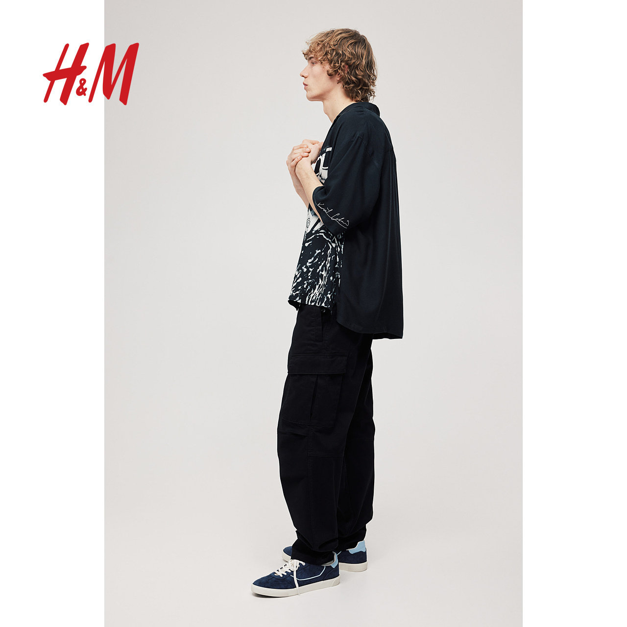 HM男装女装休闲裤冬季舒适斜纹棉布合身潮流工装裤1191680
