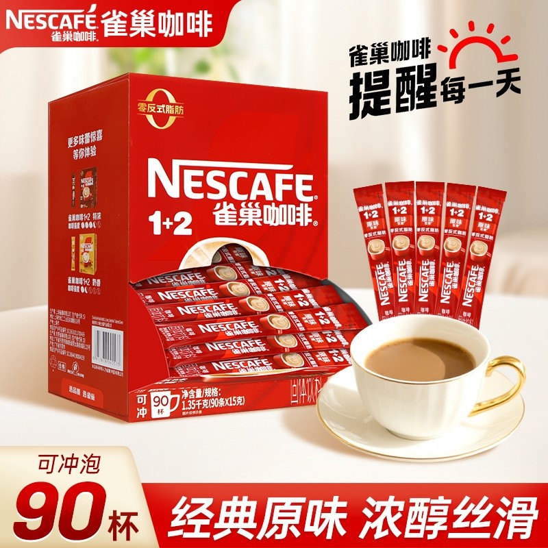 雀巢咖啡原味90条装/盒速溶咖啡三合一提神官方旗舰店正品咖啡粉