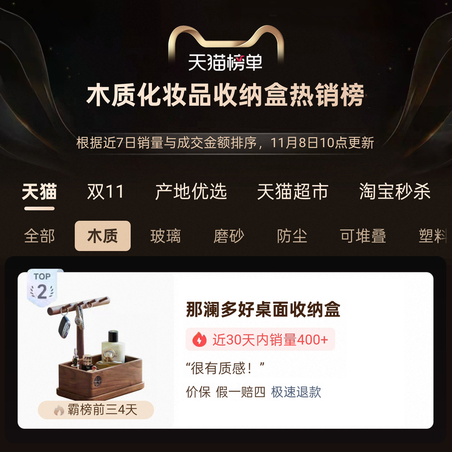进门口玄关挂钥匙收纳架黑胡桃木托盘桌面置物架首饰化妆品收纳盒