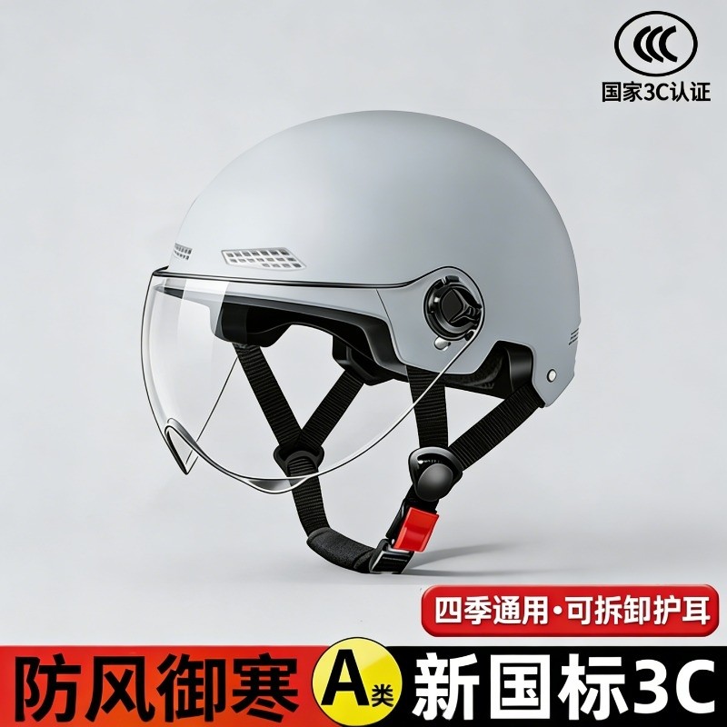 新国标3c认证电动车头盔电瓶摩托车安全帽夏季半盔四季通用镜片