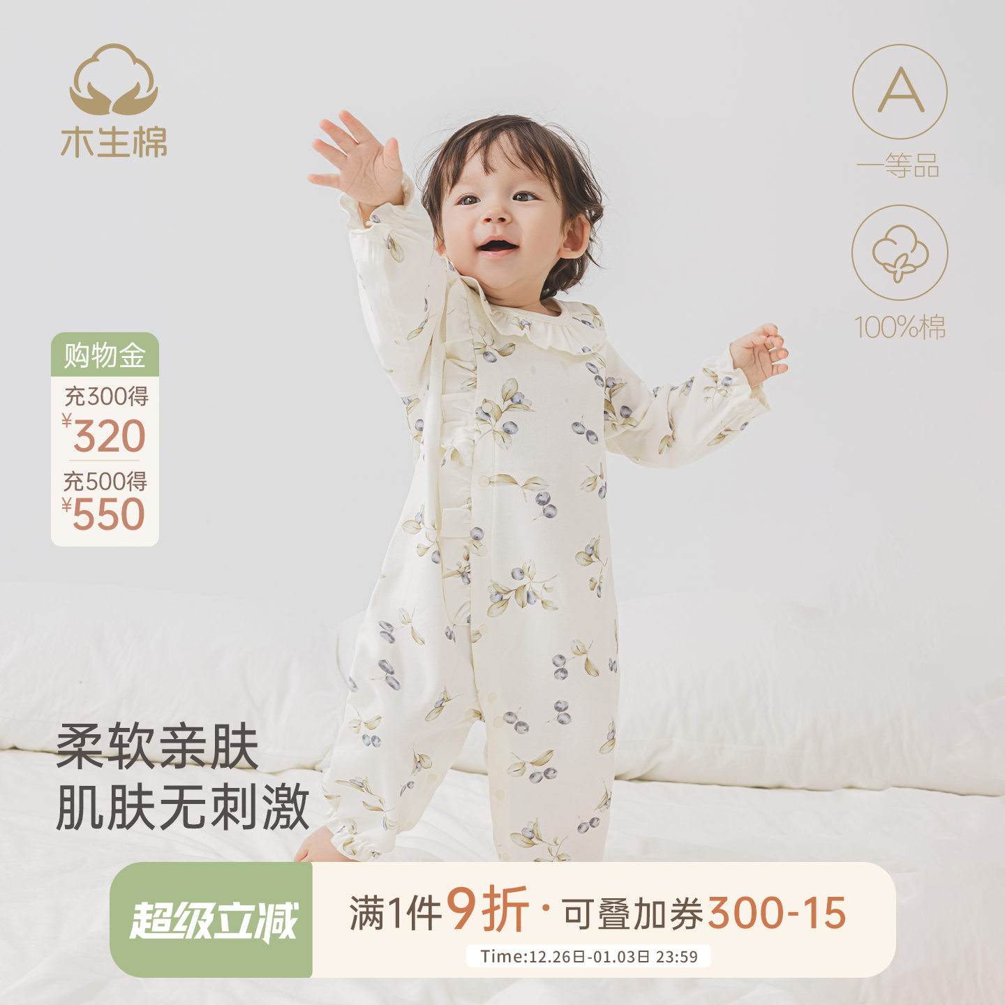 木生棉婴儿长袖连体衣春秋女宝宝纯棉哈衣居家无骨爬服睡衣服秋装