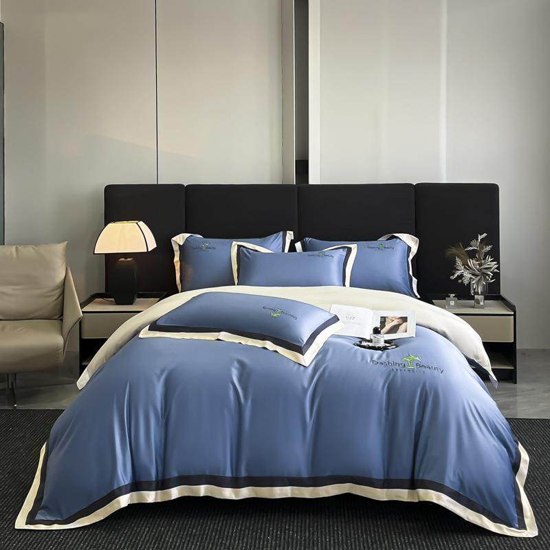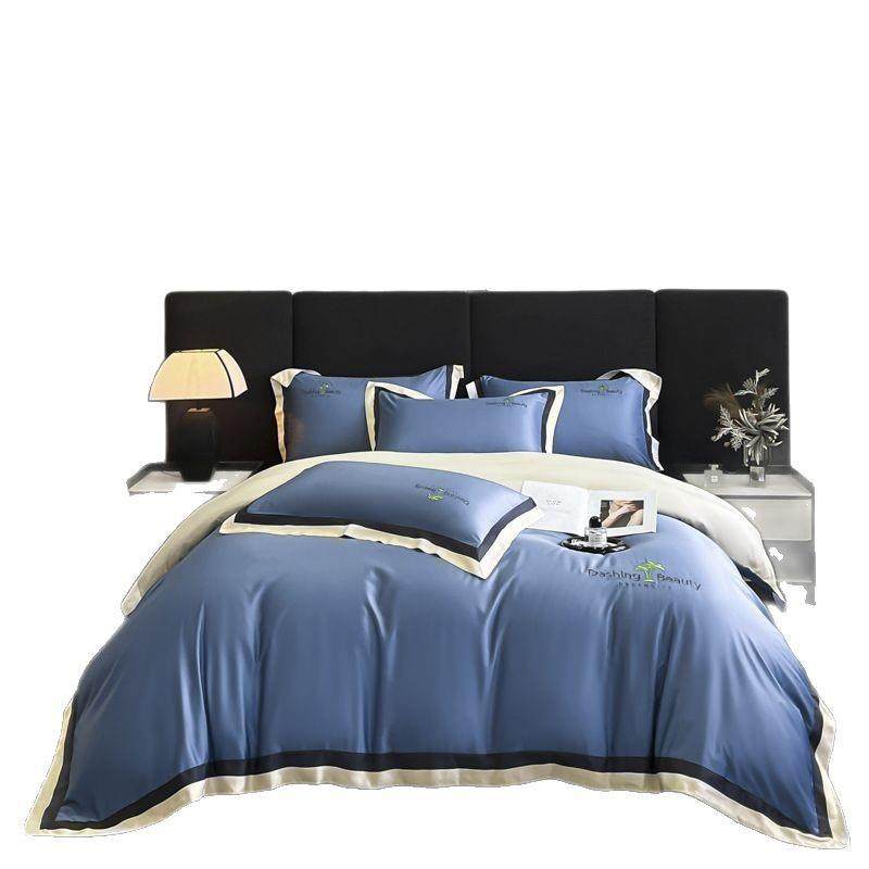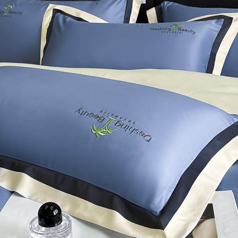 新款轻奢刺绣夏竹四件套水洗冰丝纯色加厚被套床单件套厂家