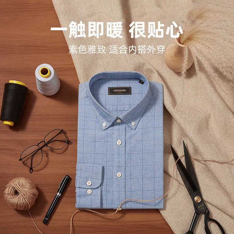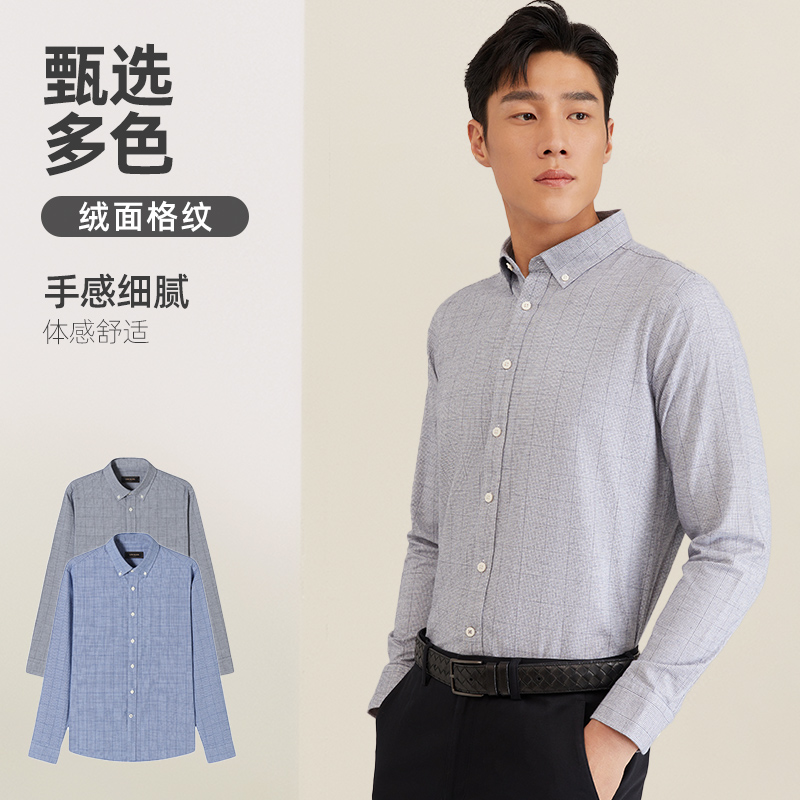 【绒面】雅戈尔男士秋季新款商务休闲纯棉保暖格纹长袖衬衫男4730