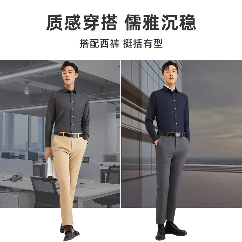 【免烫抗皱】金利来秋冬磨毛莫代尔白衬衫男休闲白色结婚长袖衬衣
