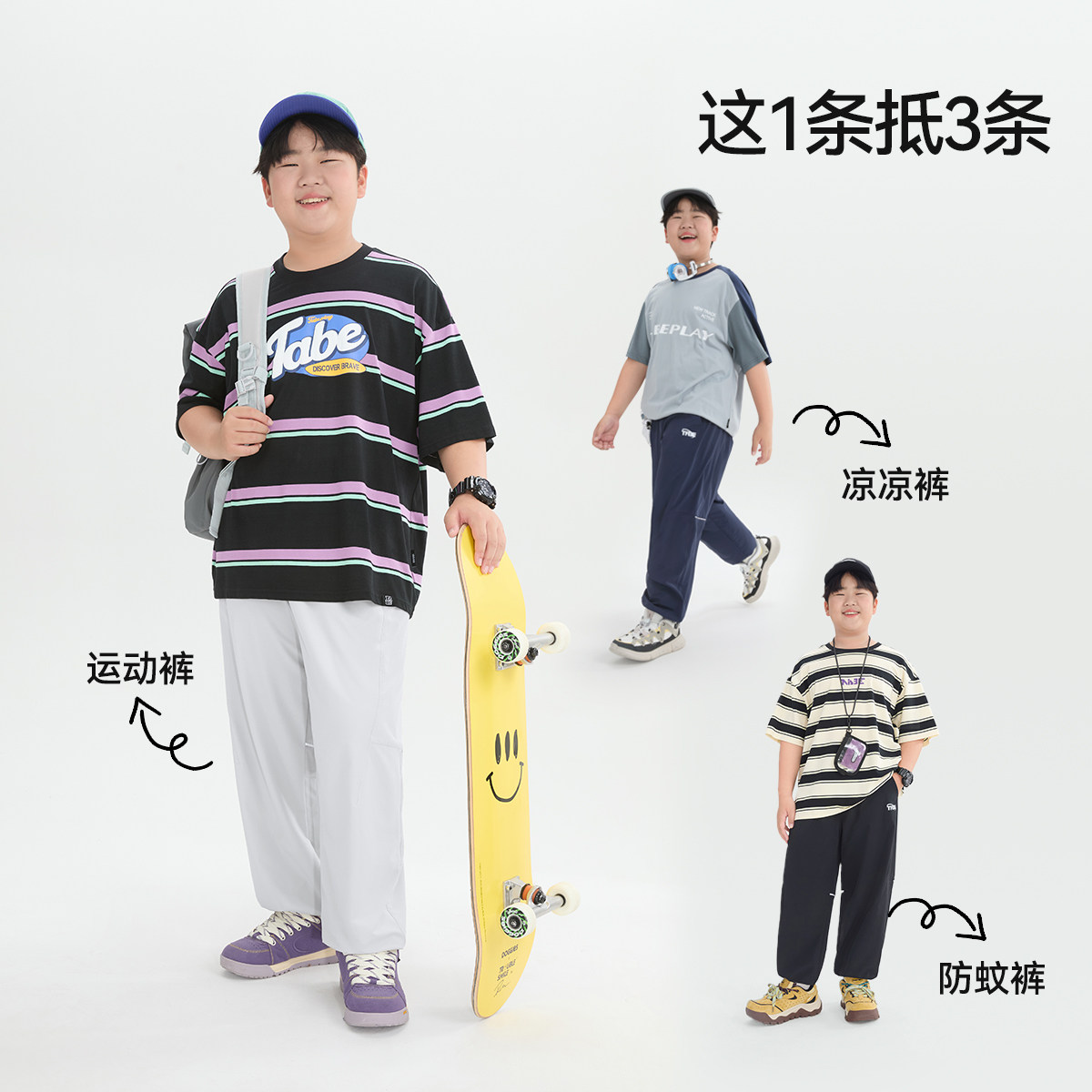 【透气凉感速干裤】小猪托尼胖男童薄长裤吸湿排汗防蚊裤宽松裤子