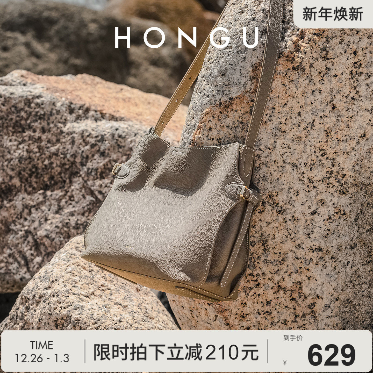 红谷包包女2025新款质感真皮单肩腋下包休闲慵懒牛皮水桶包女士包