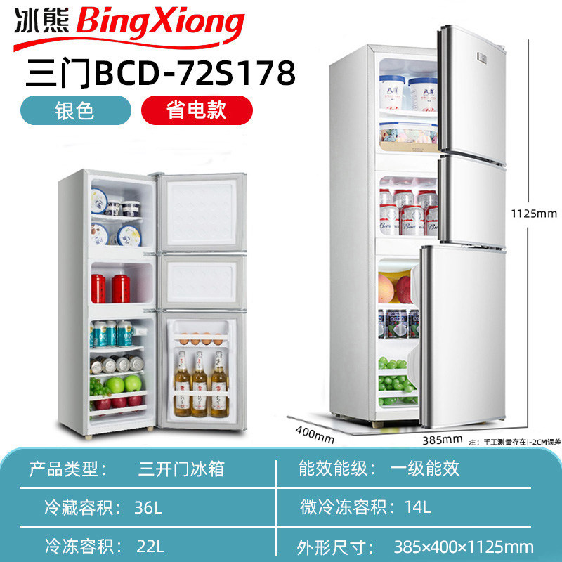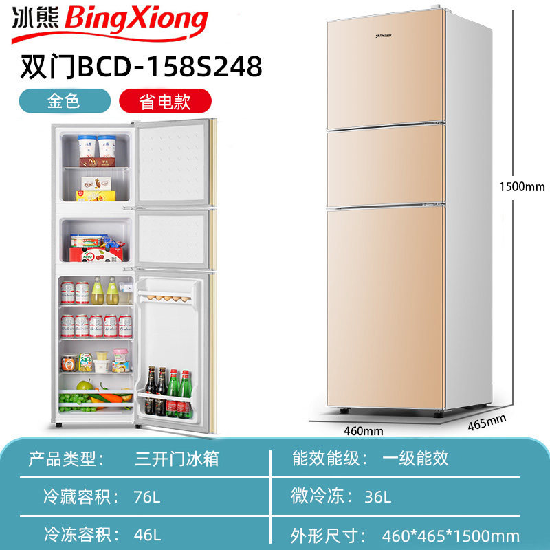 冰熊冰箱家用小型三门冰箱中型冷冻冷藏软冷冻租房宿舍节能电冰箱
