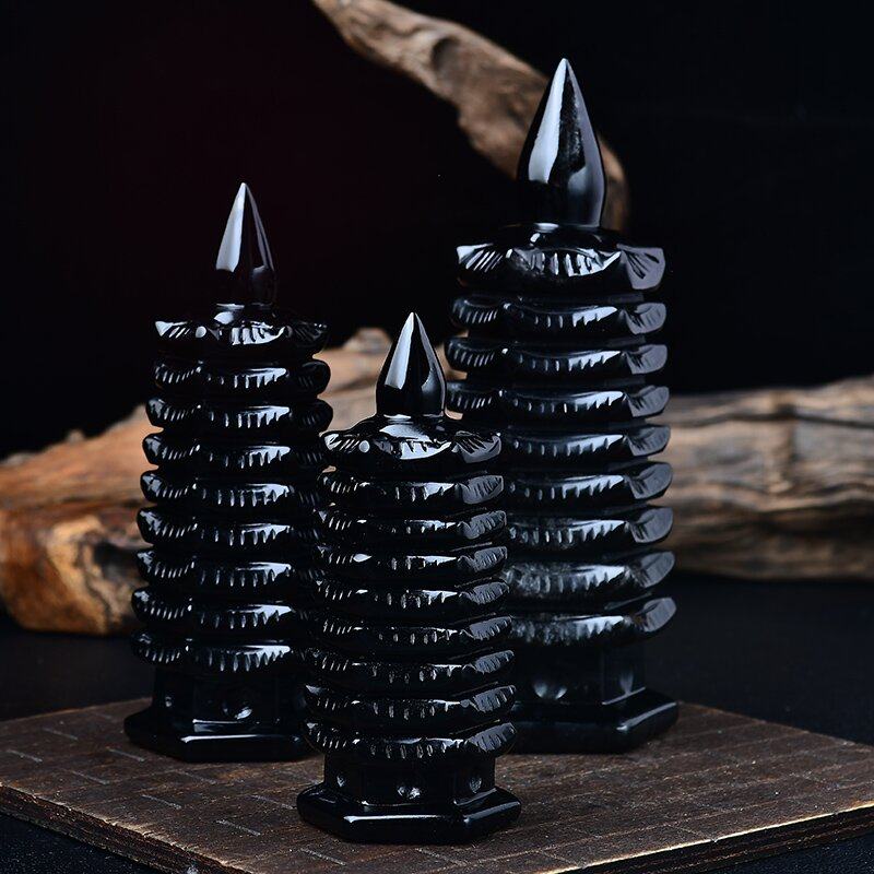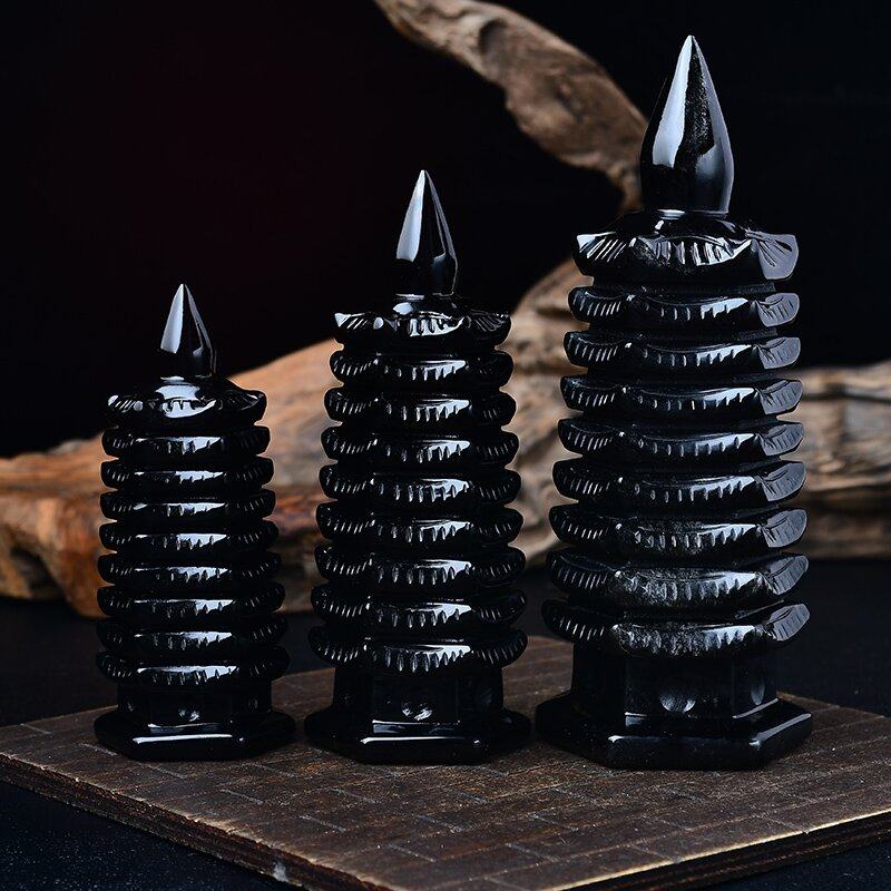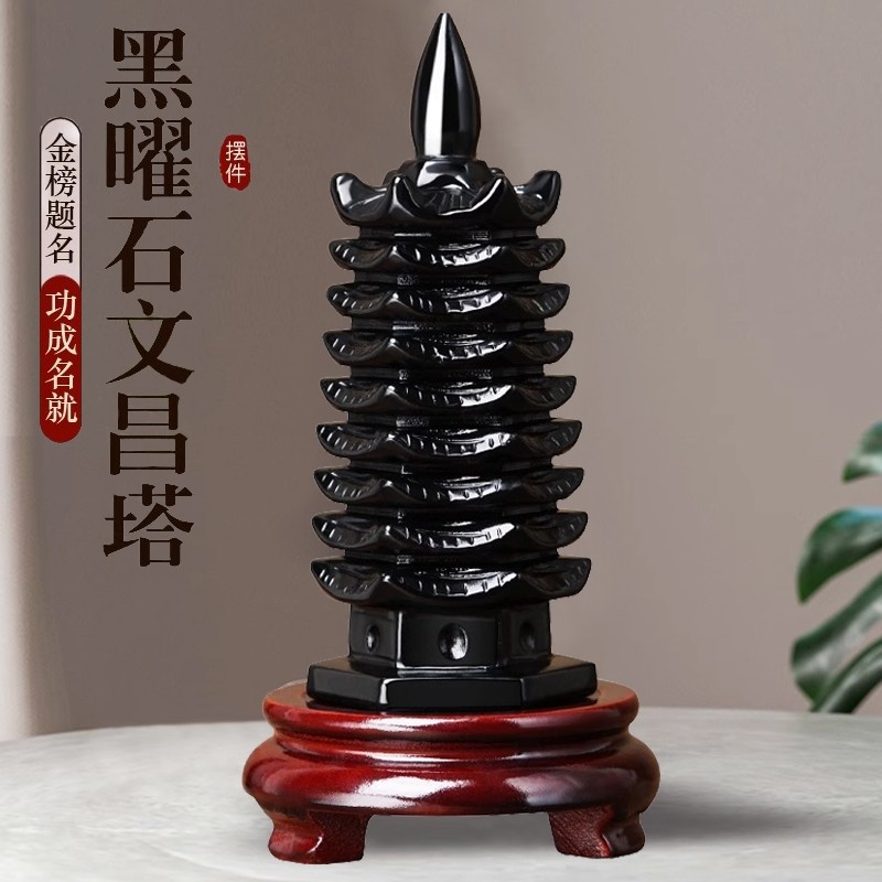 天然黑曜石文昌塔摆件七层13层书桌办公家居送装饰品礼物底座钥匙