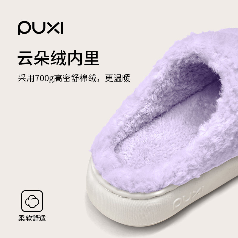 朴西棉拖鞋女士秋冬季厚底简约保暖室内居家用软底防滑情侣棉拖男