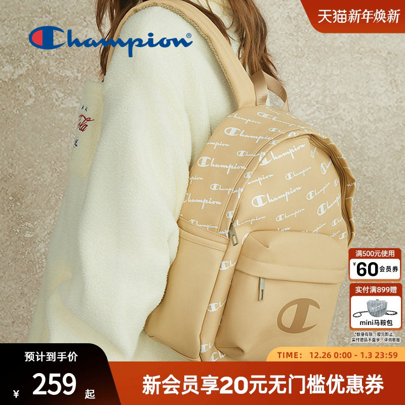Champion冠军官方学生百搭双肩包女白色大容量老花时尚背包男书包