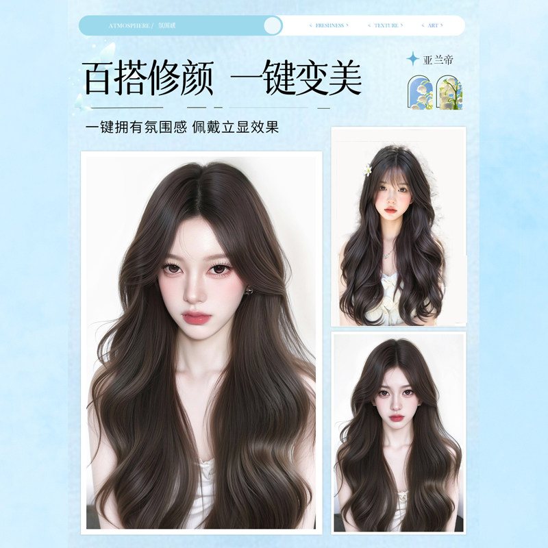 假发大波浪全头套女长卷发自然微卷中分八字刘海整顶全头套假发