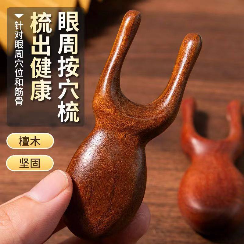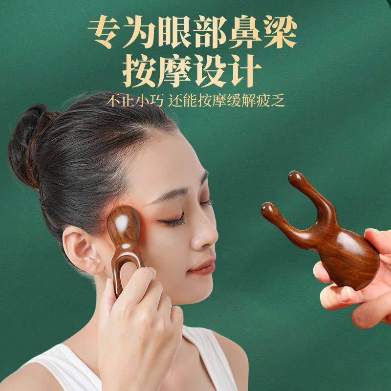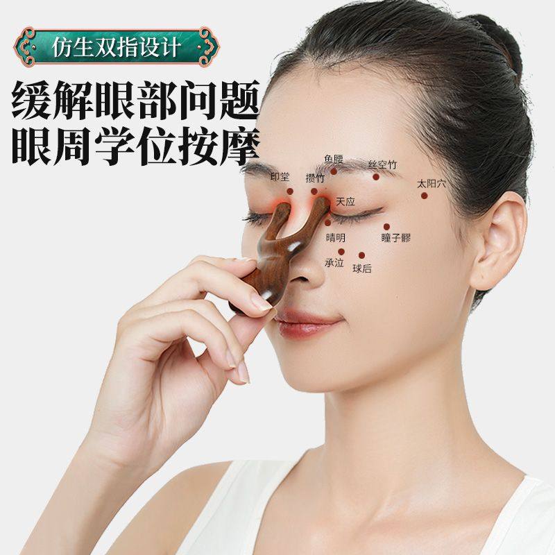 眼部按摩梳鼻梁眼睛面部经络刮鼻器加厚檀木梳子小青蛙按摩神器