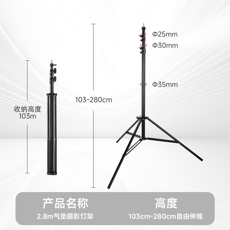 摄影灯架2.8米气垫铝合金闪光灯架子摄影灯附件拍摄折叠支架摄影灯架三脚架支撑架影视灯架稳定悬臂架