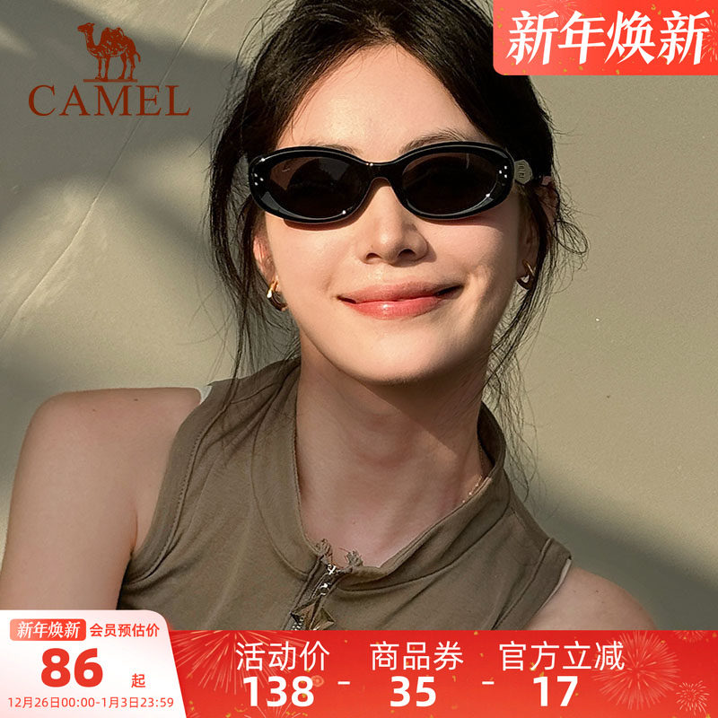 骆驼复古色猫眼墨镜女2025春夏显脸小偏光太阳镜防紫外线遮阳眼镜