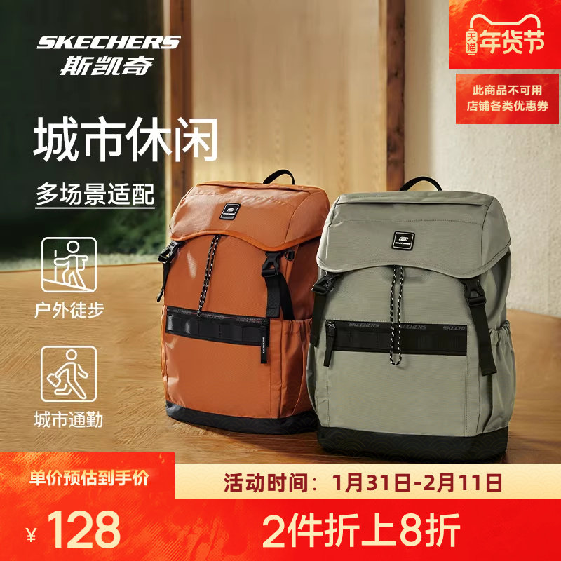 斯凯奇双肩包大容量简约旅行背包开学季百搭大学生运动休闲书包