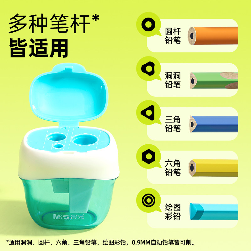 晨光卷笔刀三孔转笔刀削笔刀小学生儿童幼儿园迷你型专用手动刨笔机粗三角铅笔刀削笔器大口径多功能旋笔刀