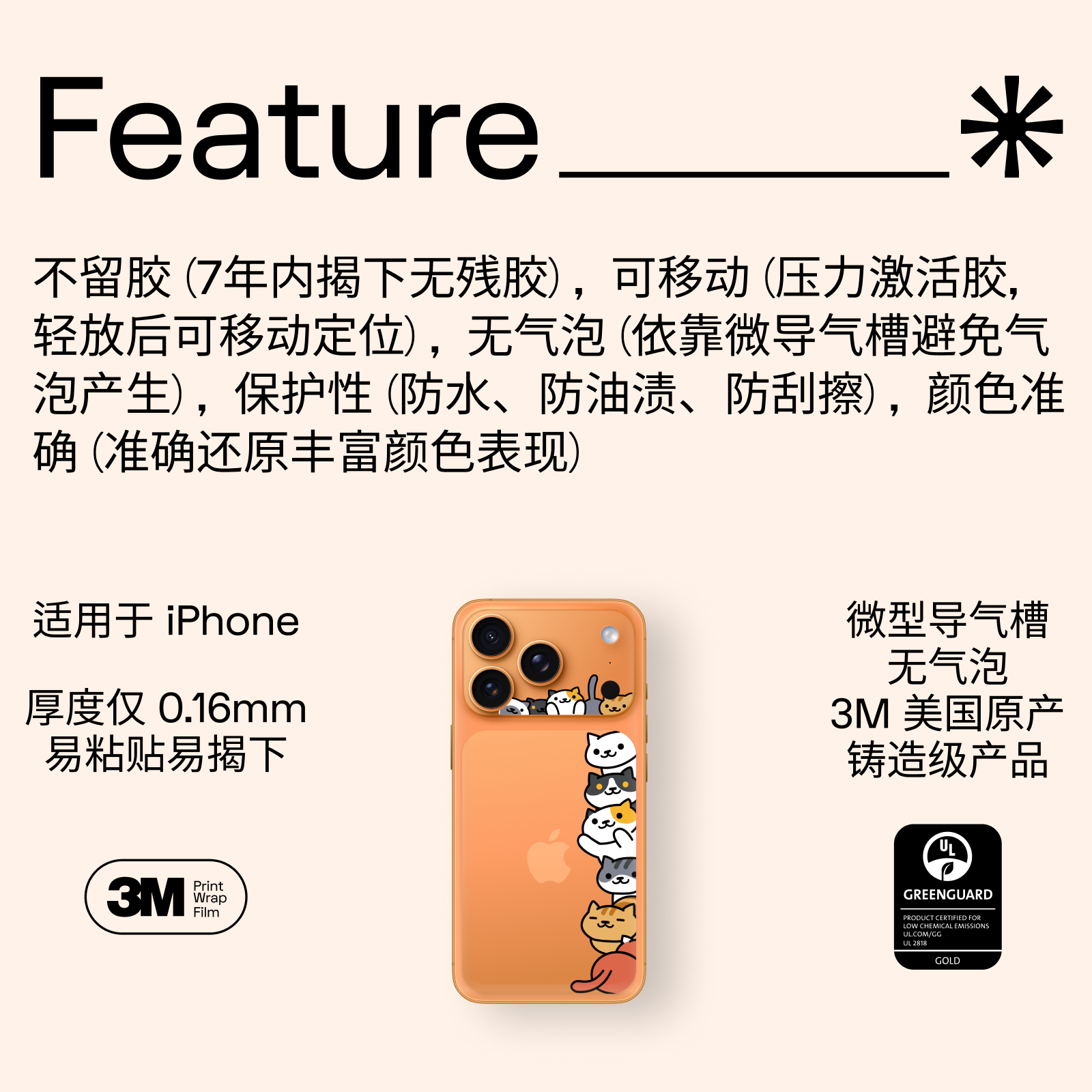 SkinAT适用苹果手机背面局部区域贴膜 iPone 17 Pro/17 Pro Max 卡通卡片背贴 镜头防护防划遮瑕 无残胶易贴