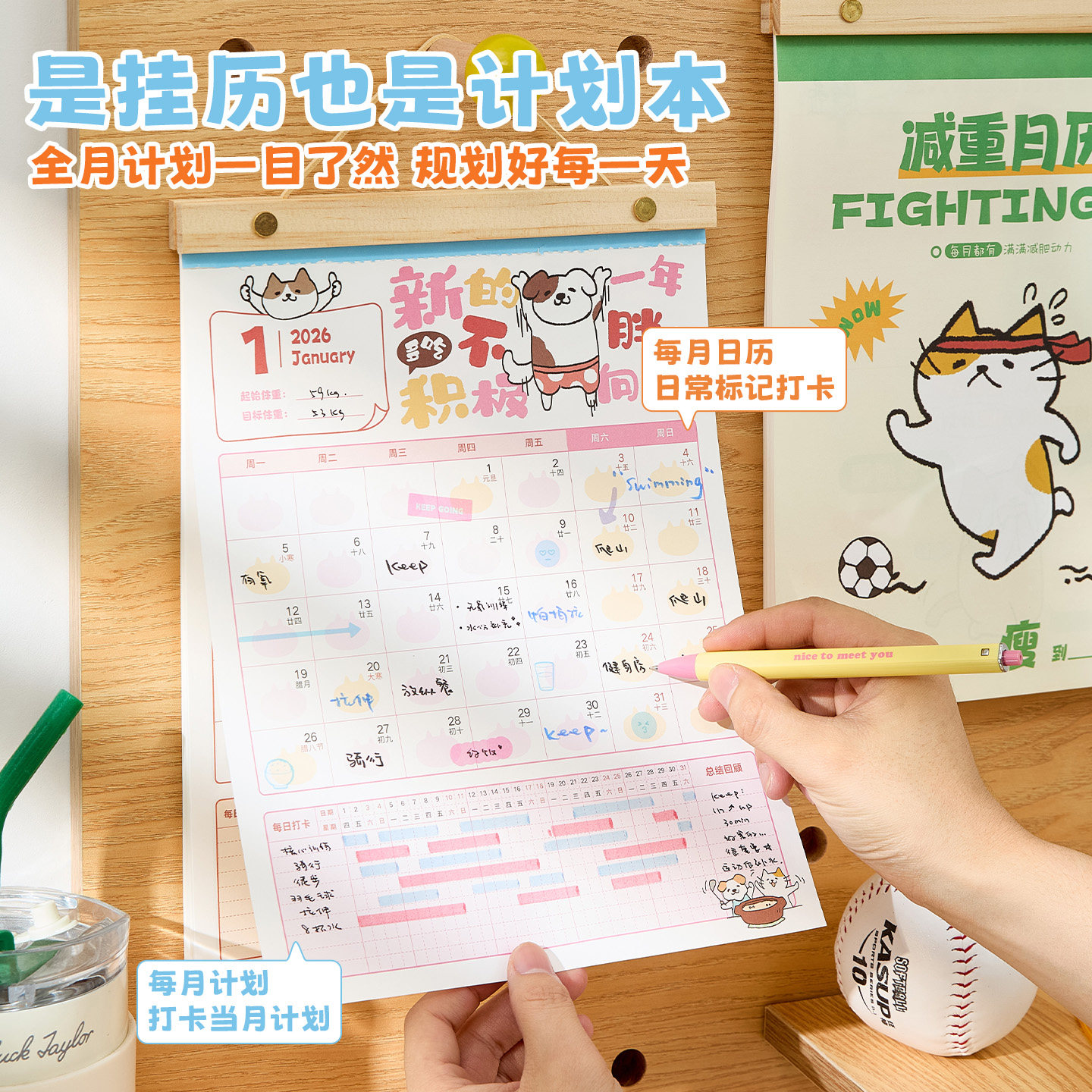 三年二班 2026宠物好友吸引日历高颜值ins风简约办公室桌面摆件打卡计划本倒计时日程备忘录月历新款创意台历
