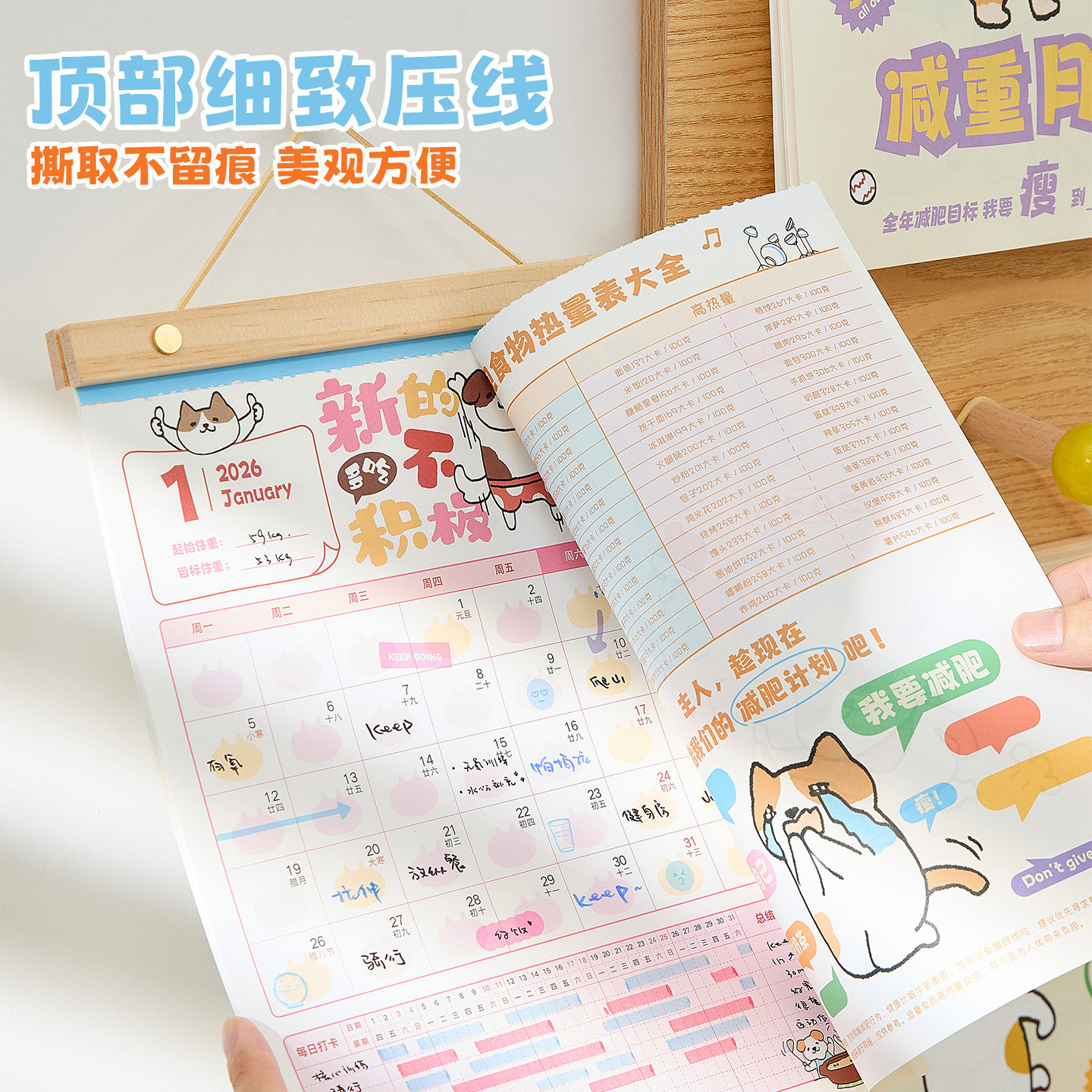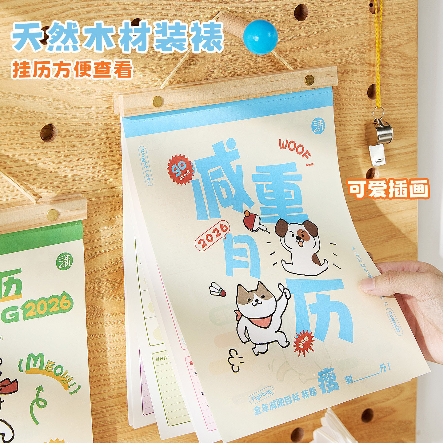 三年二班 减重挂历2026年新款日历大格子木质大号家用挂墙手撕月历备忘录高级感年历计划自律打卡台历减肥