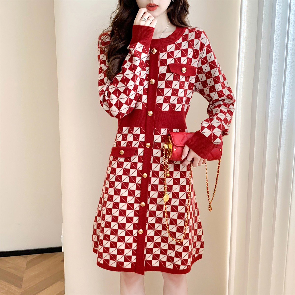 唐狮秋冬节日风名媛感显瘦连衣裙甜美风宽松超好看温柔系裙子TM