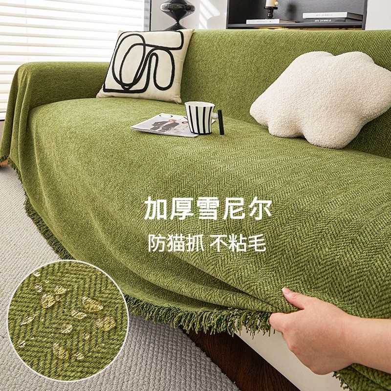 雪尼尔沙发盖布巾纯色人字纹四季通用防滑沙发垫全包万能套罩毯子
