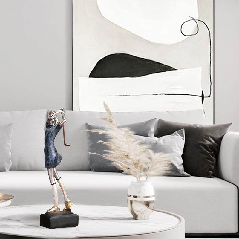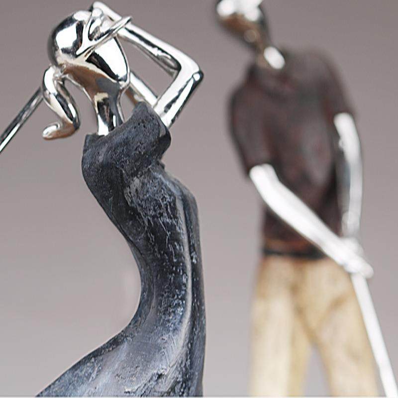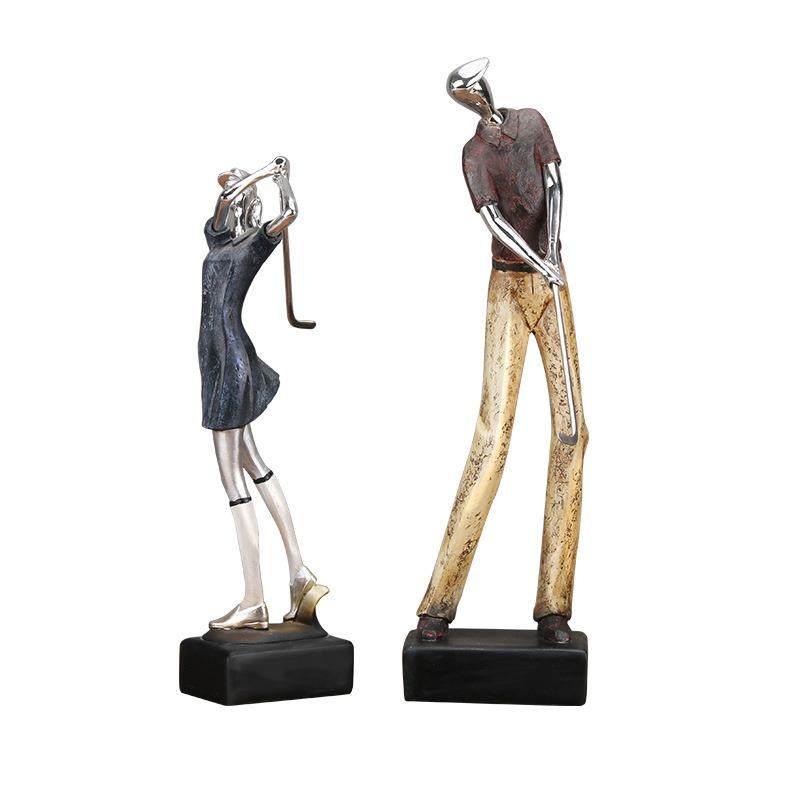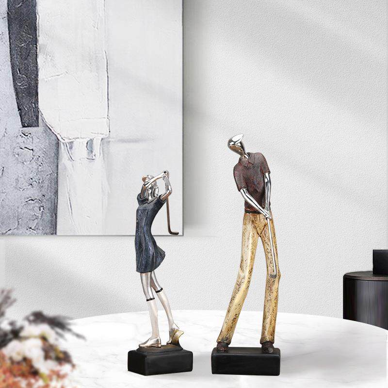 新中式高尔夫情侣人物摆件客厅桌面书房样板房玄关家居软装饰品