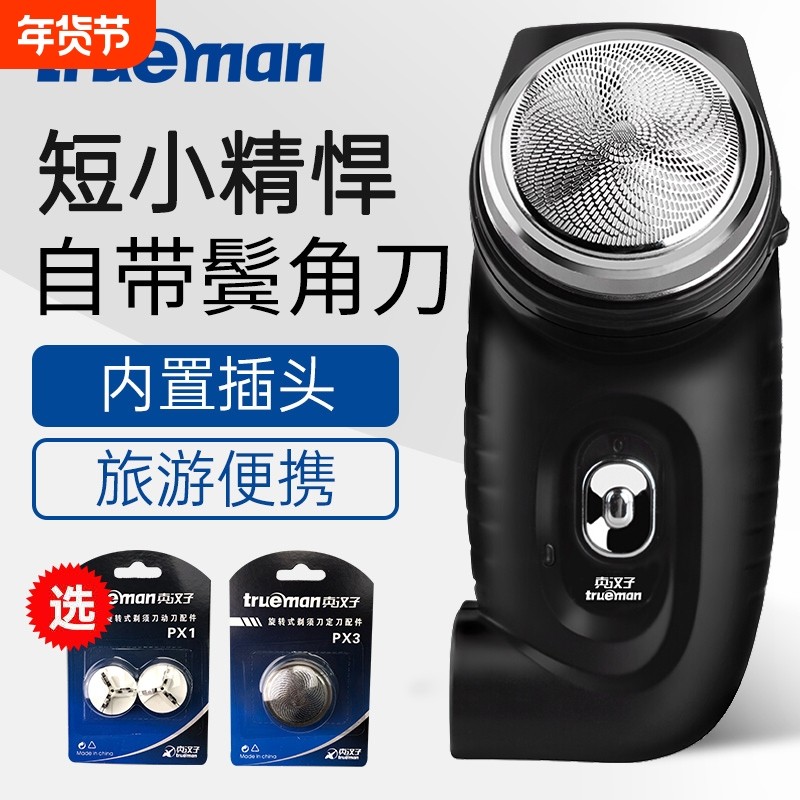 真汉子剃须刀电动刮胡刀充电式胡须刀单头男士小巧圆头胡子刀便携
