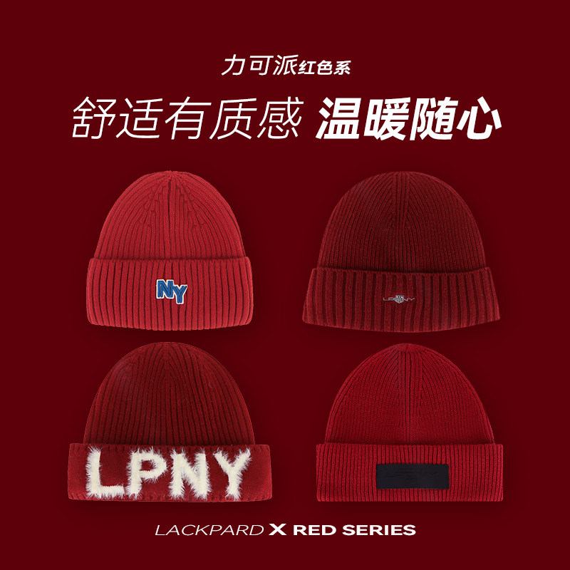 【时尚】lackpard红色高级感棒球帽男女本命年保暖针织帽情侣帽子