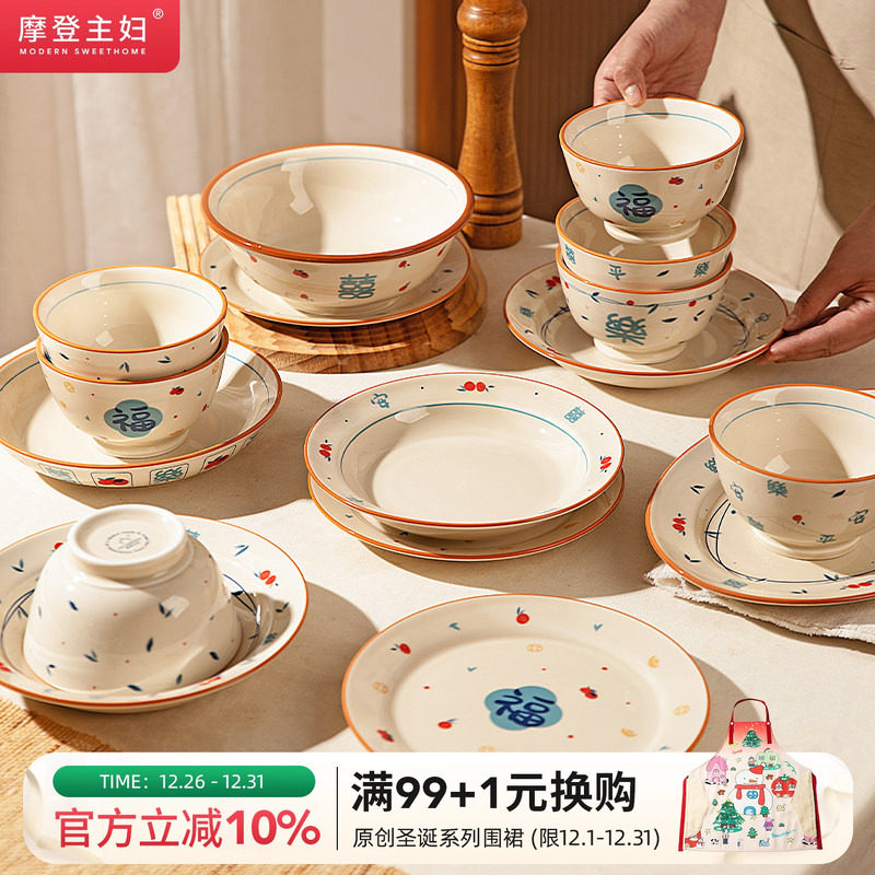 摩登主妇饭碗餐具套装碗碟盘子家用菜盘2025新款乔迁新居碗具餐盘