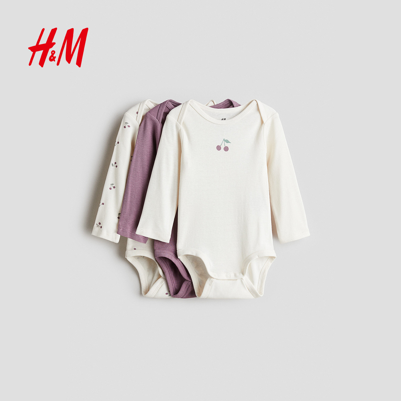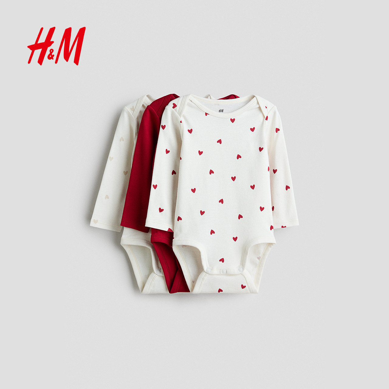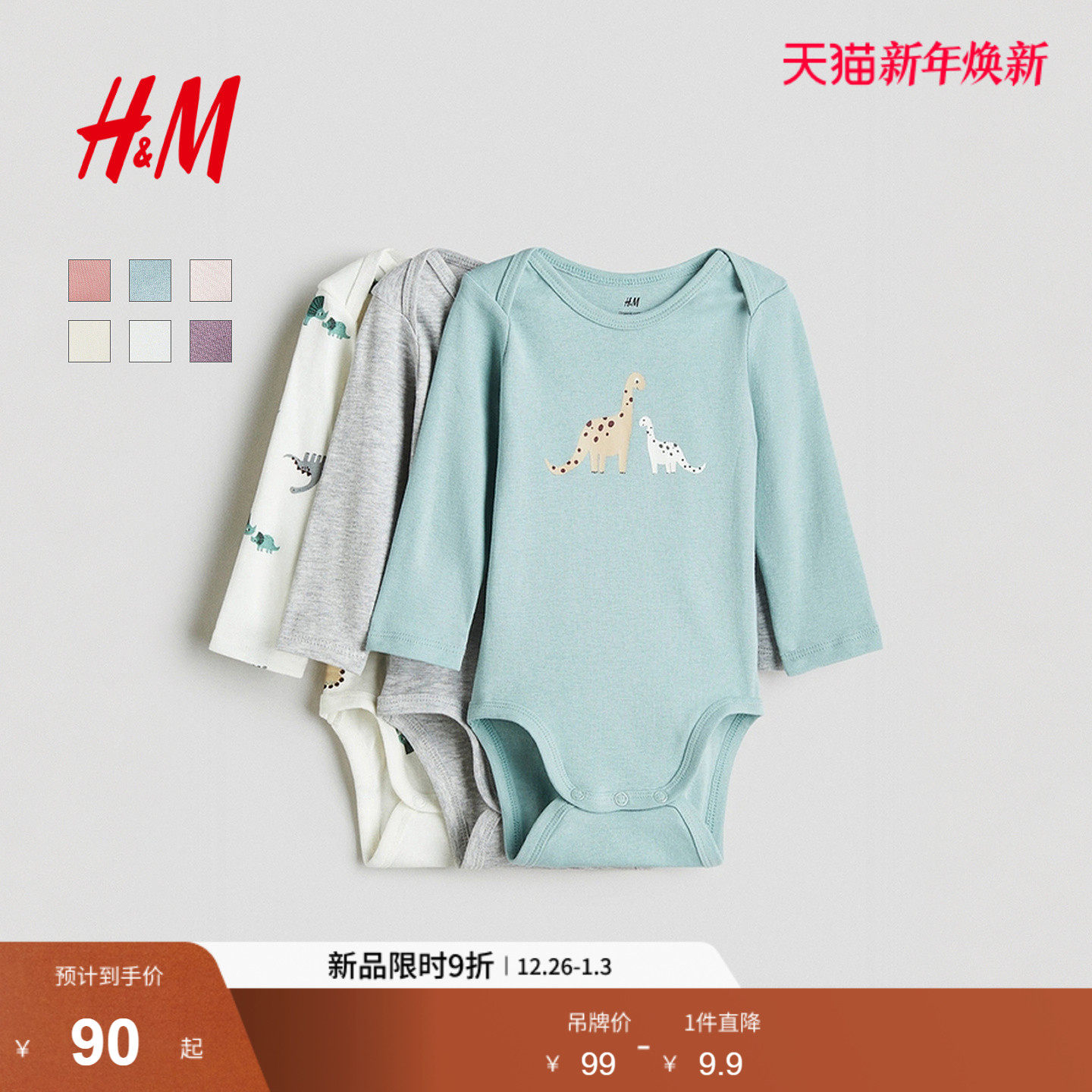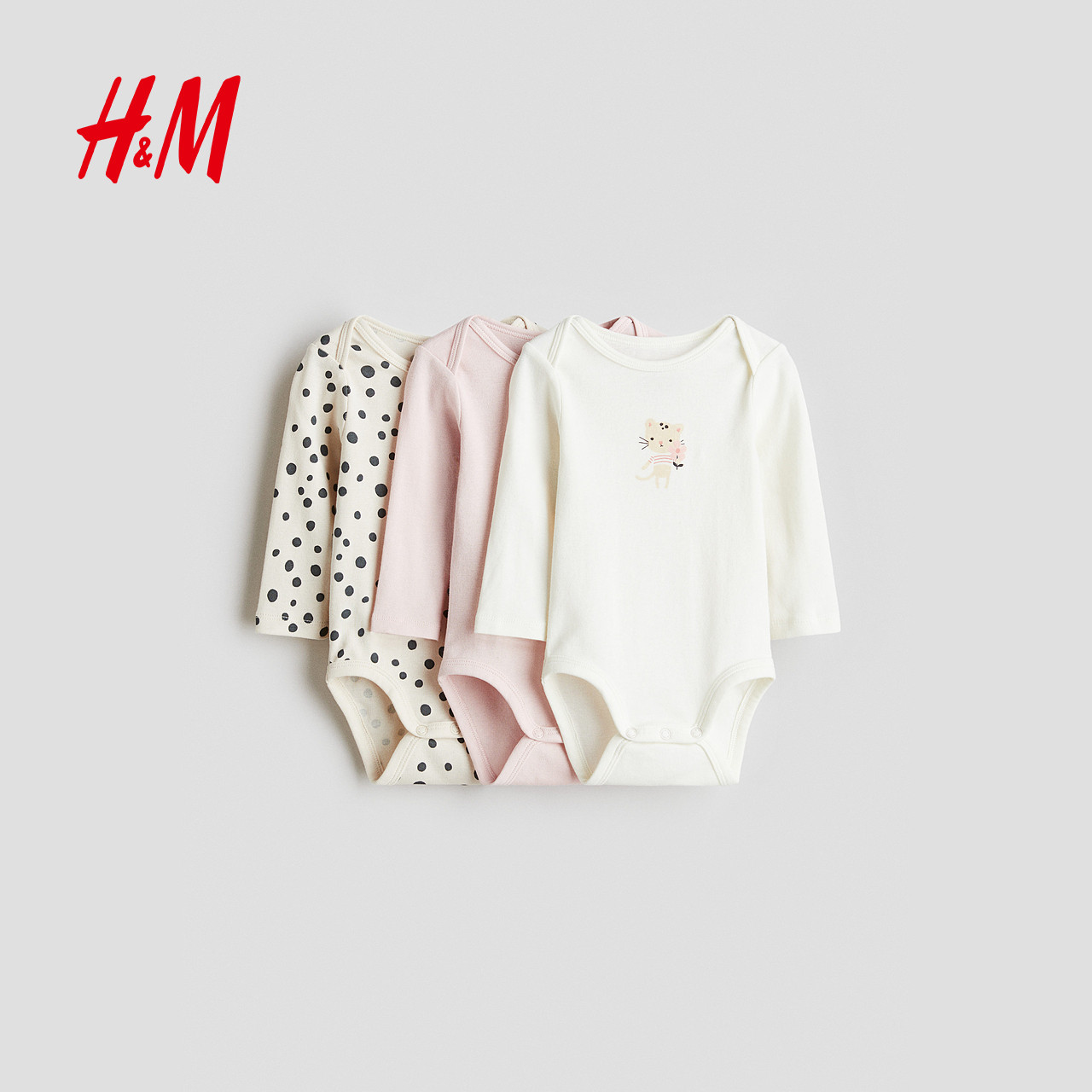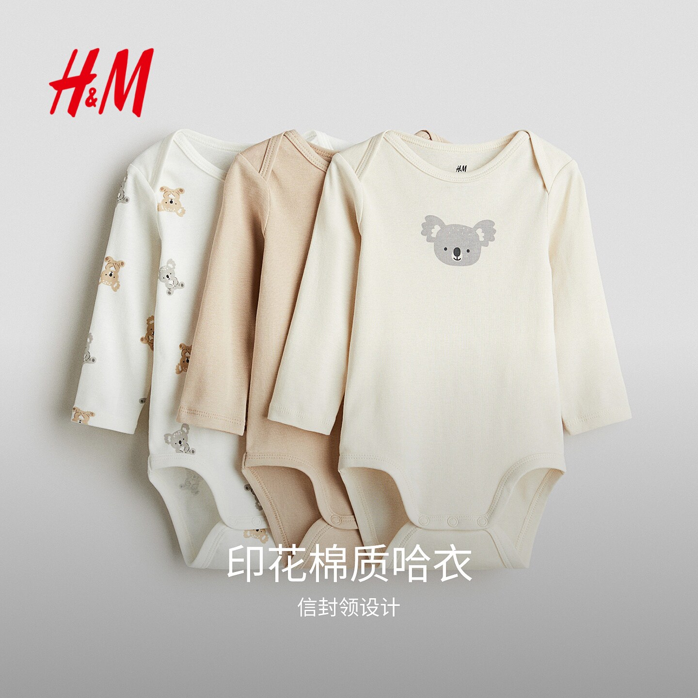 HM童装男婴女婴连身衣3件装冬季圆领印花长袖内着哈衣爬服1265824