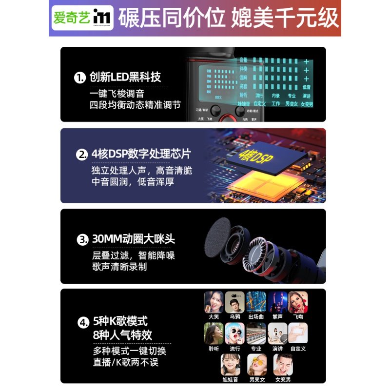 爱奇艺i71麦克风专业动圈声卡话筒音响手机全民K歌神器可电视唱歌