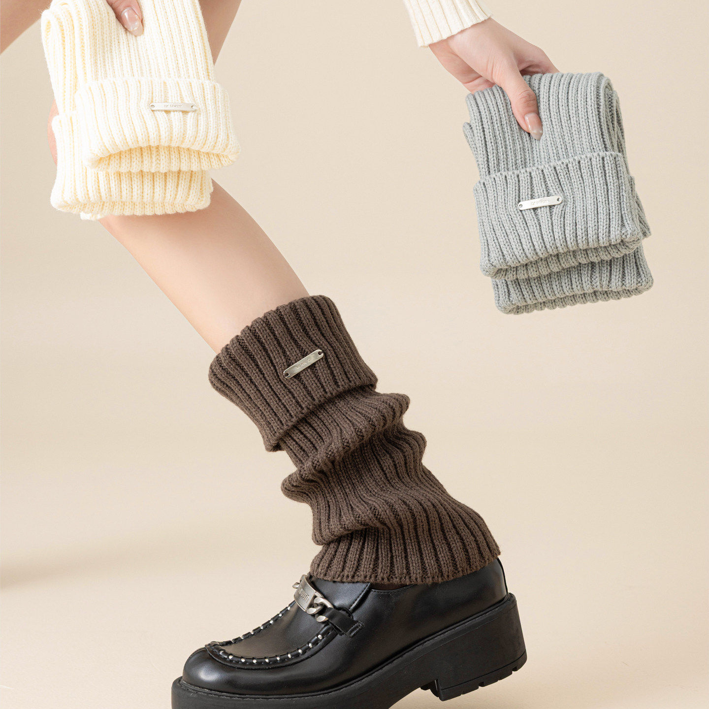 腿套女冬季加厚保暖白色针织堆堆袜配雪地靴秋冬款女生中筒薄款