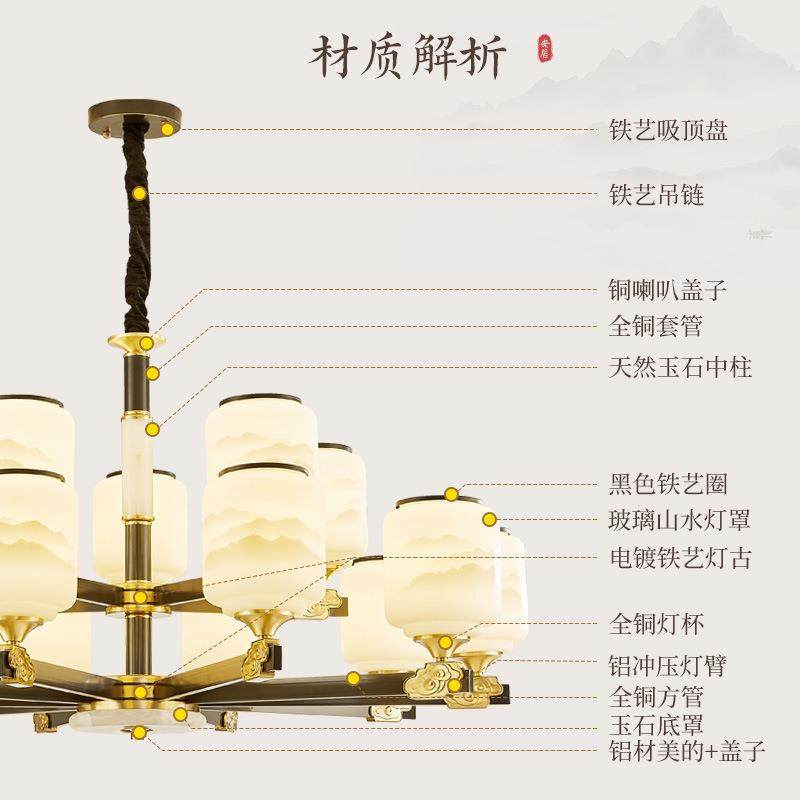 新中式全铜吊灯客厅餐厅灯别墅复式楼简约现代中式灯具灯饰
