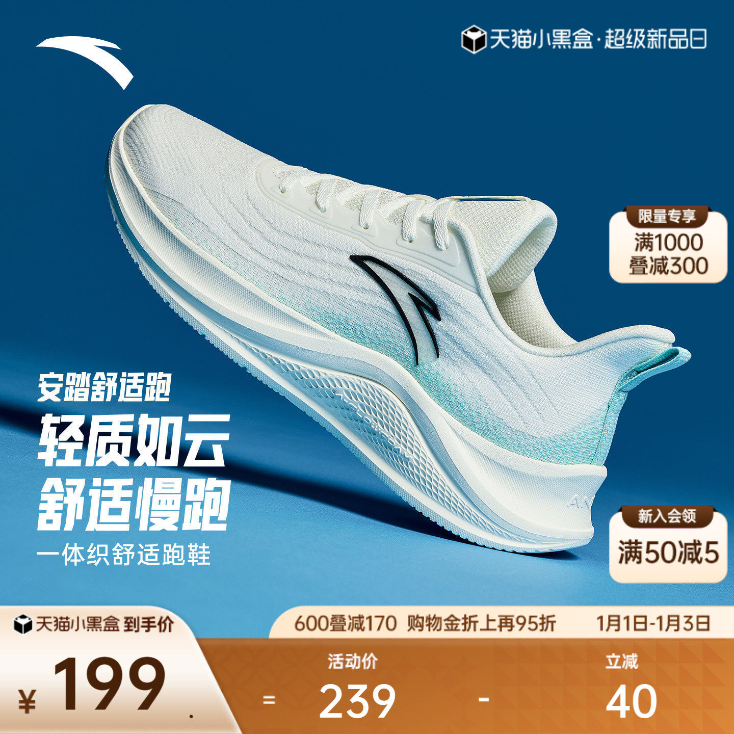 安踏轻便减震跑鞋男子冬季运动鞋软底轻质舒适慢跑鞋跑步鞋