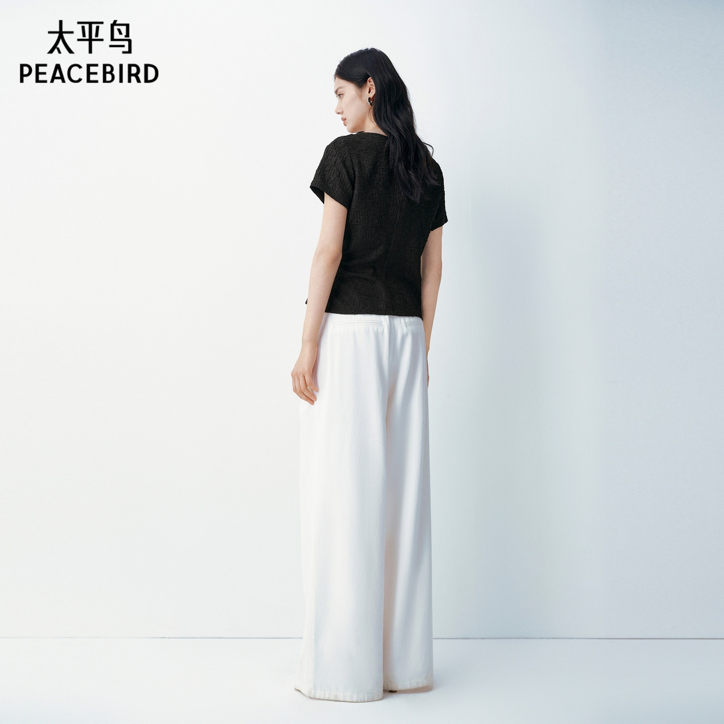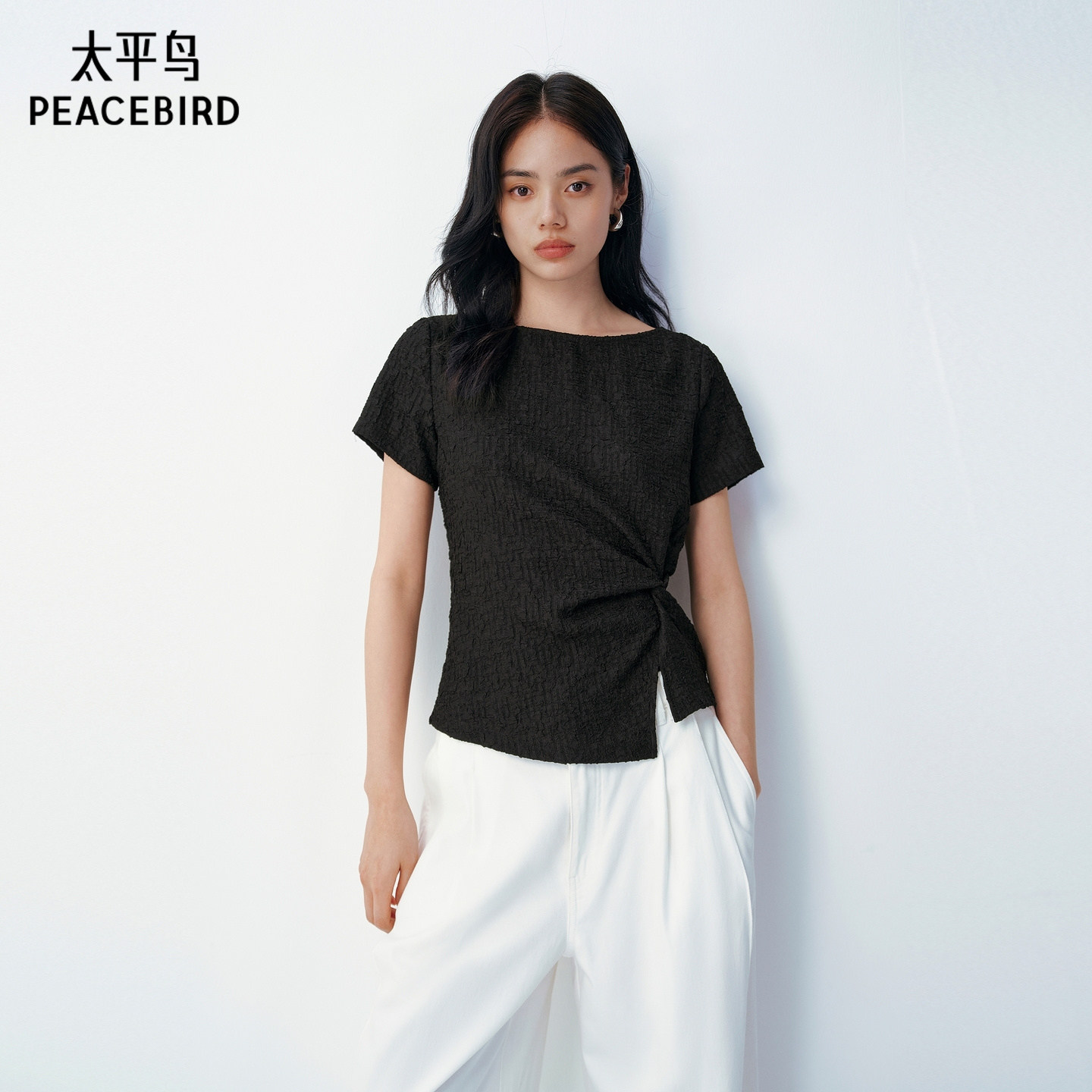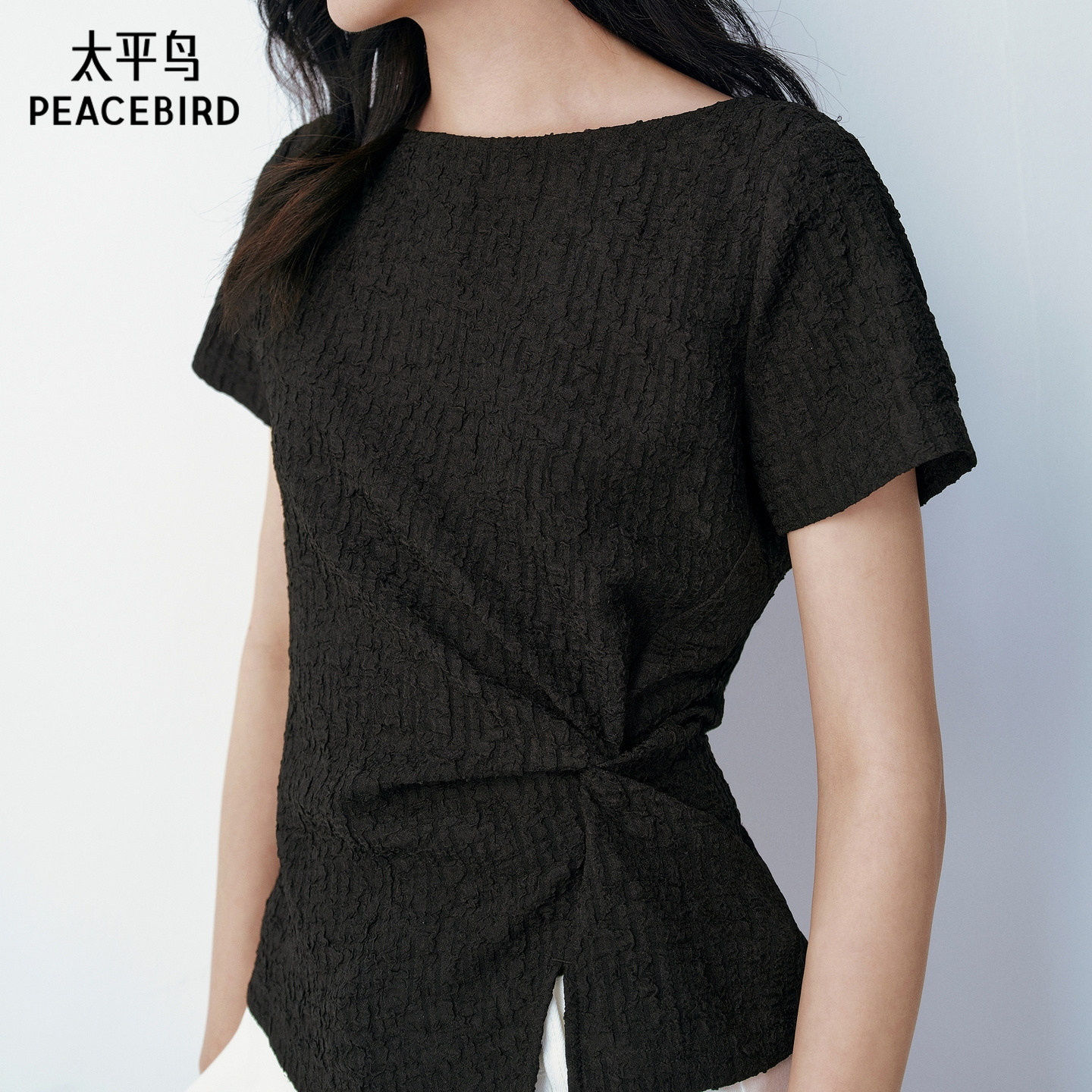 太平鸟肌理感面料圆领通勤短袖T恤女2026夏装新款围裹式品质上衣