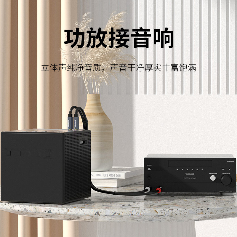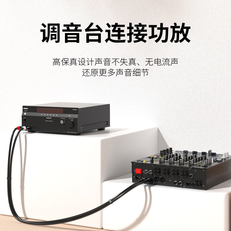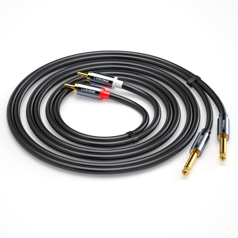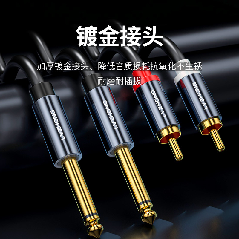 绿众双6.5转双莲花头2RCA调音台功放连接线6.35mm公对公大二芯2对2插头音响电子琴吉他话筒声卡专用音频线