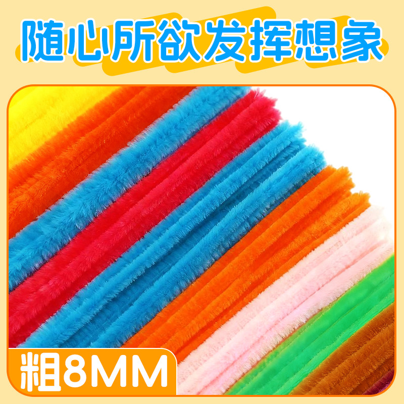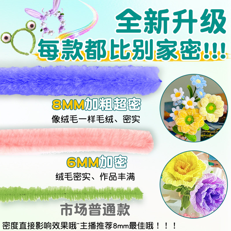毛根红色扭扭棒新年手工diy材料包编织套装8mm特密妞妞棒手工花儿童幼儿园花束发箍手捧花头饰加密毛条绿色