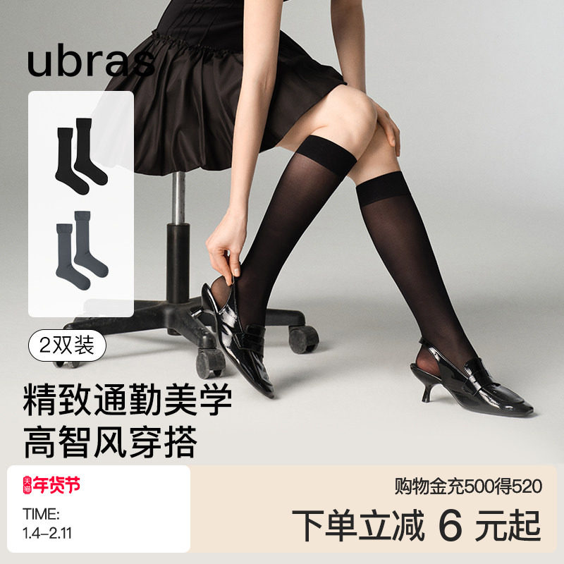 ubras小腿袜元气慕斯高弹长筒袜子压力丝袜两双装新款春夏
