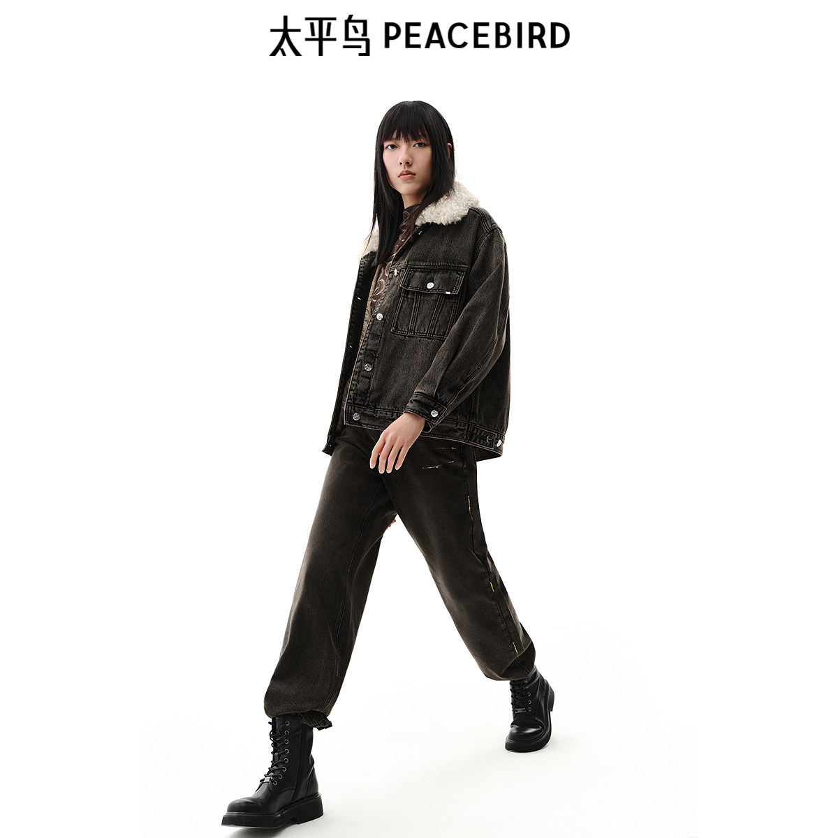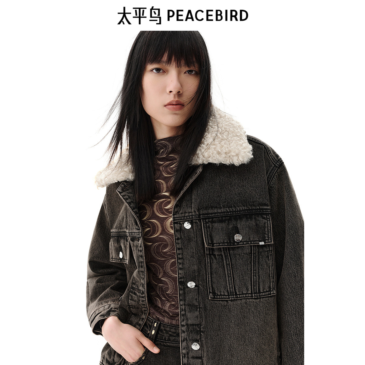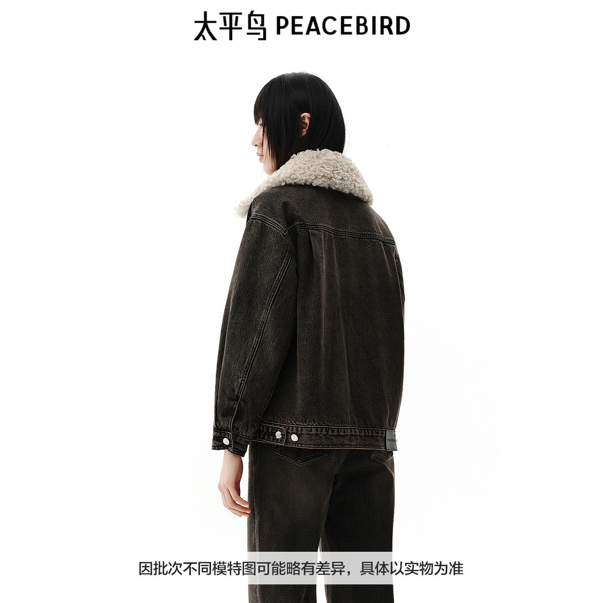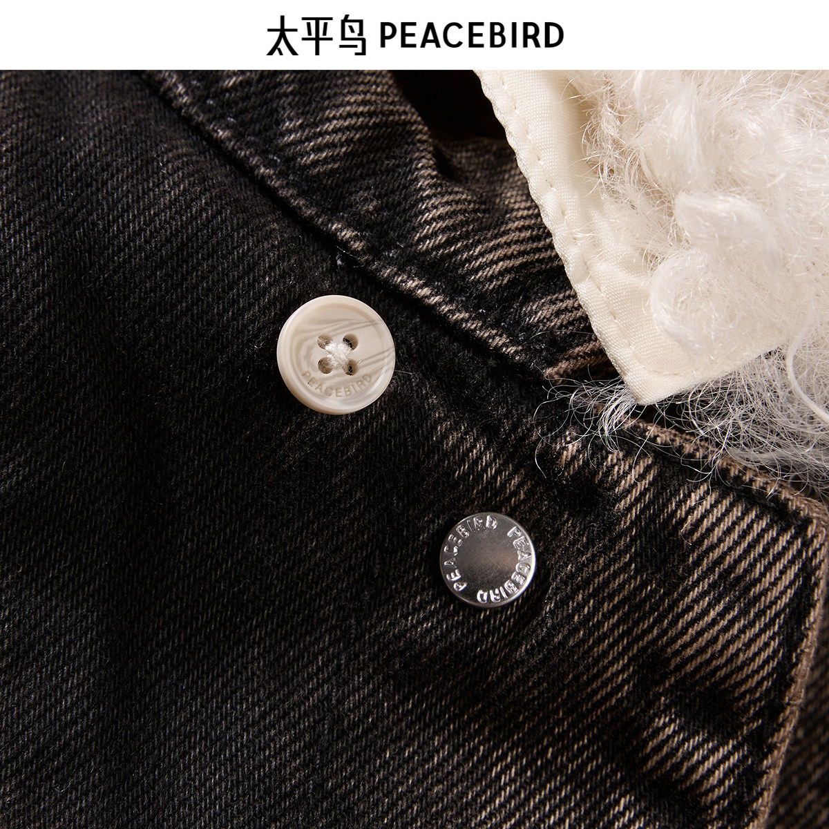 太平鸟年冬季新款可拆卸毛领牛仔棉衣A3ABE4434
