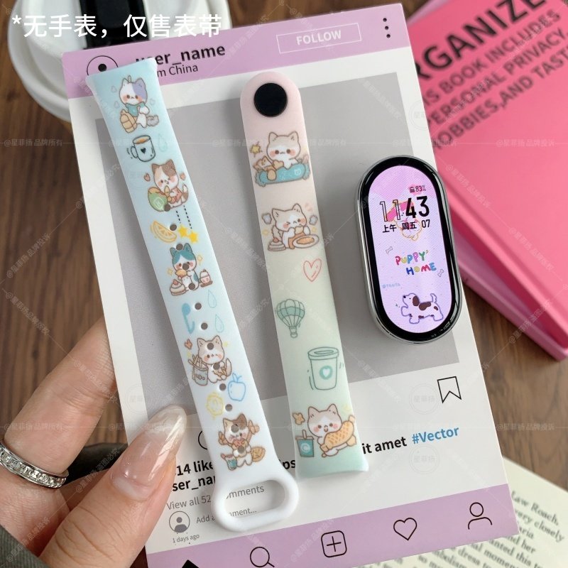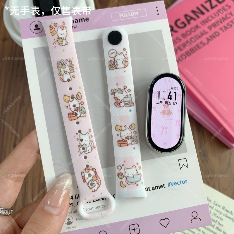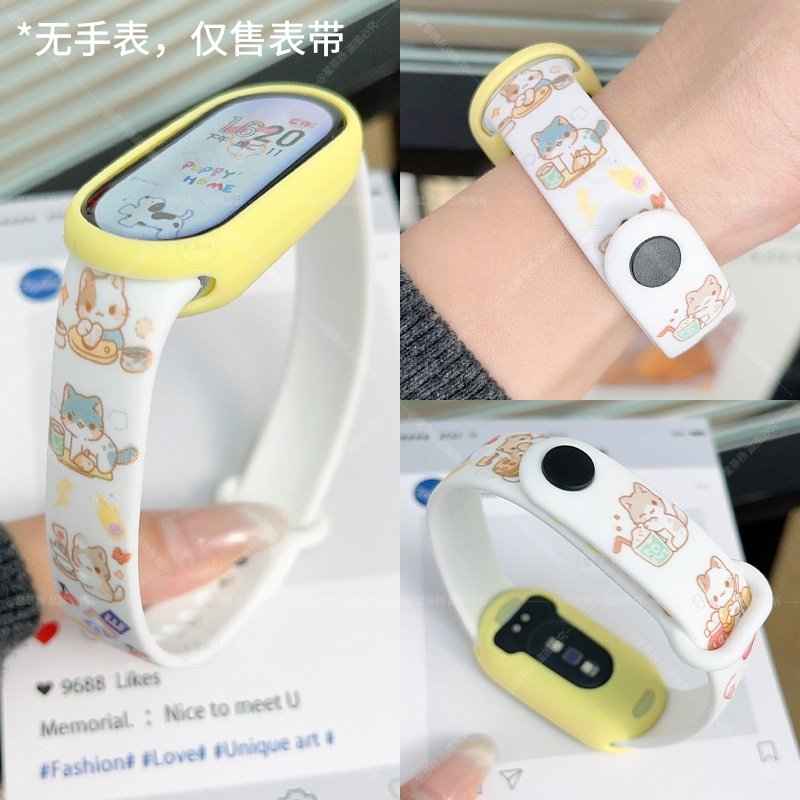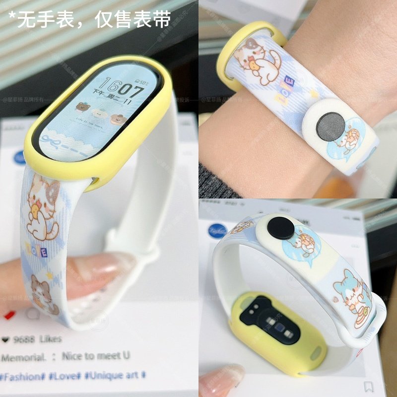 适用小米手环10NFC表带硅胶印花小米9nfc猫咪情侣款xiaomi8代个性猫咪日常运动硅胶腕带9陶瓷版8代猫咪可爱款