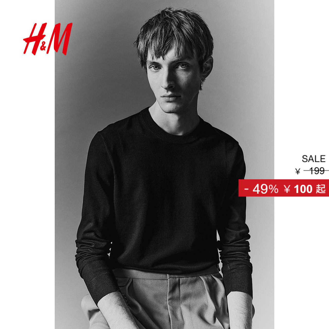 HM男装女装针织衫冬季长袖情侣装圆领长袖内搭打底衫套衫1232260