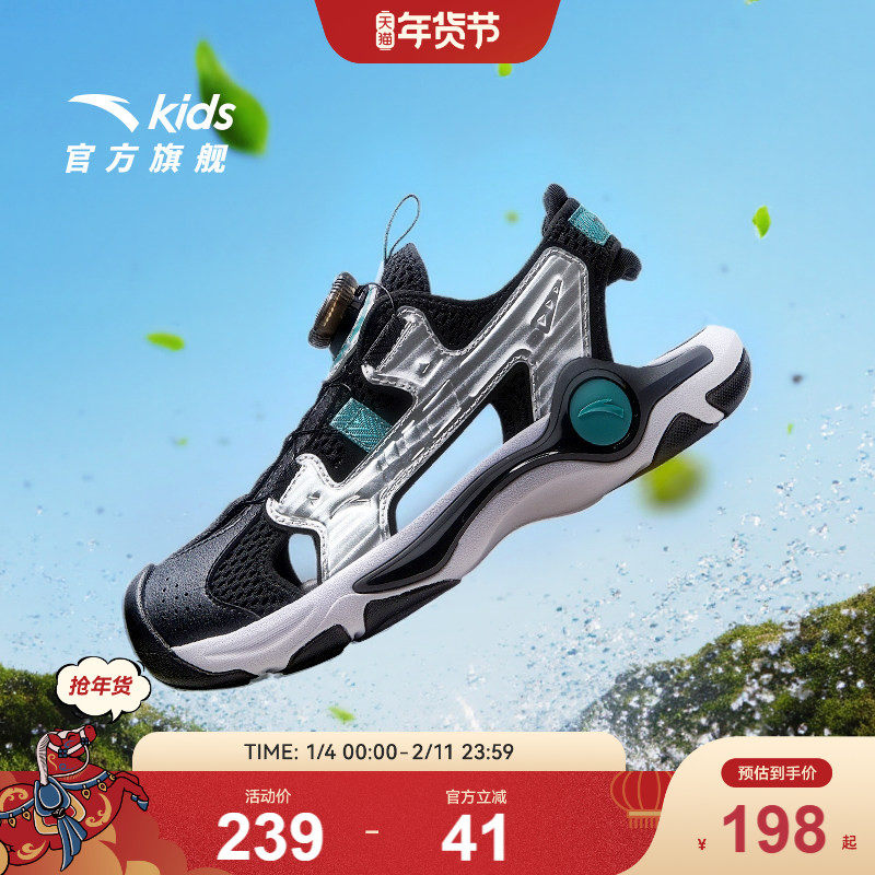 安踏儿童男大童沙滩鞋2025夏季新款透气防滑耐磨中大童包头凉鞋潮