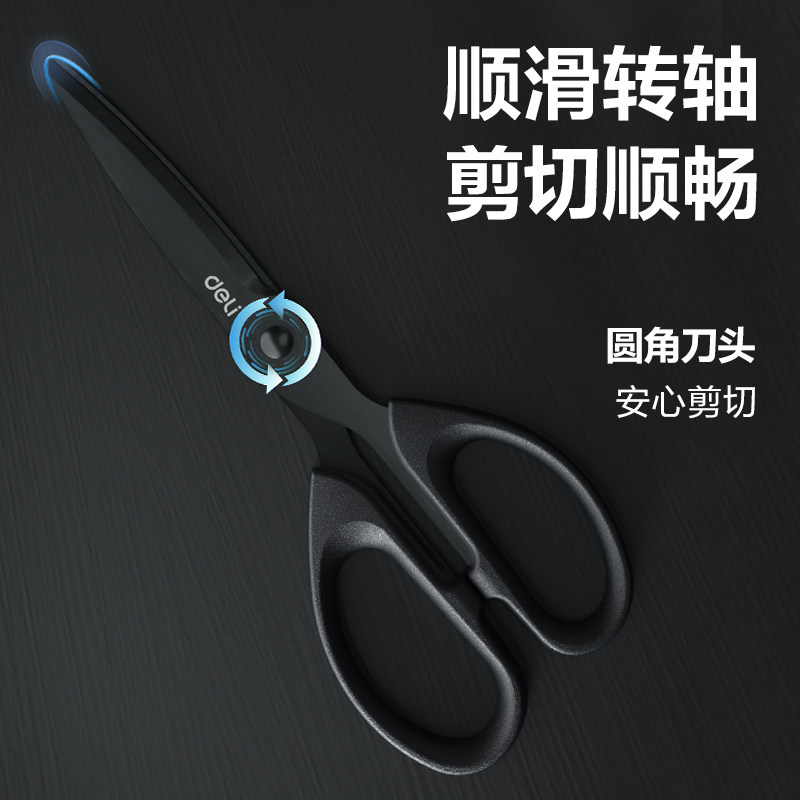 得力黑刃剪刀不锈钢剪子不粘胶办公拆快递家用学生安全手工剪纸刀