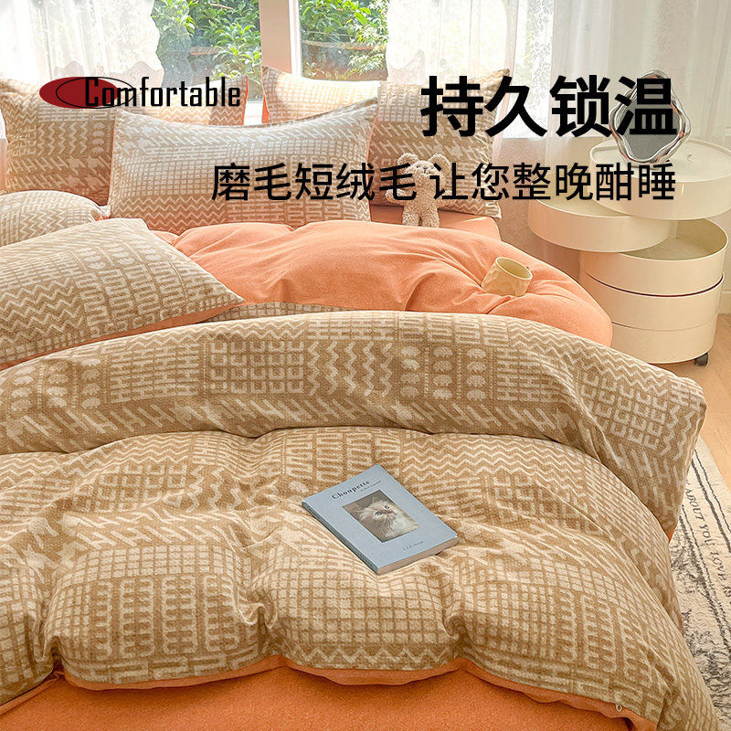 秋冬季加厚四件套牛奶绒被套床单双面加绒被罩床笠学生宿舍三件套