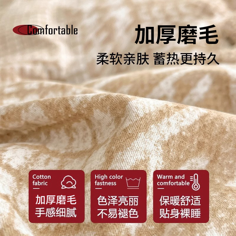 猫人加厚磨毛四件套2025秋冬季床单被套三件套床笠款床品套件米床