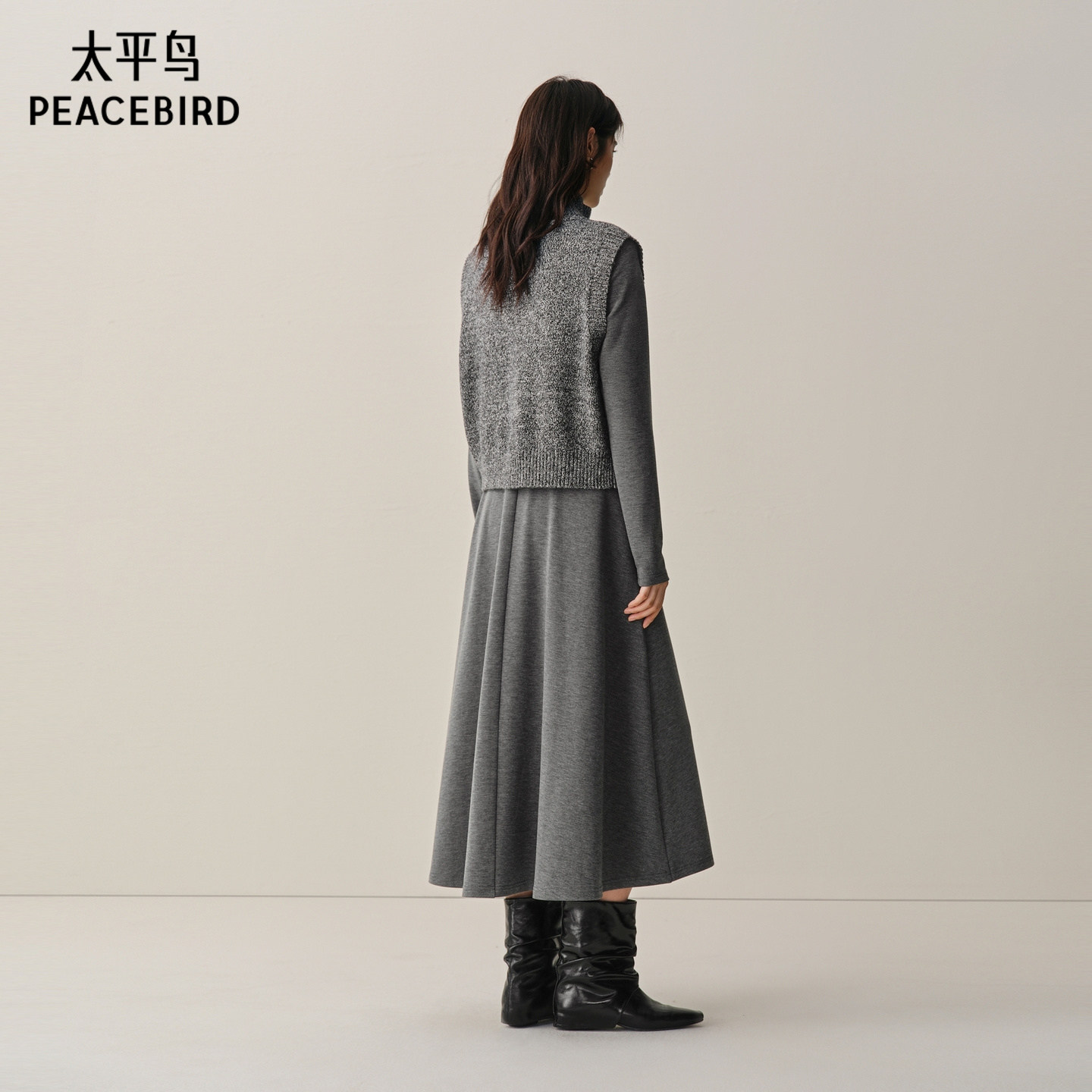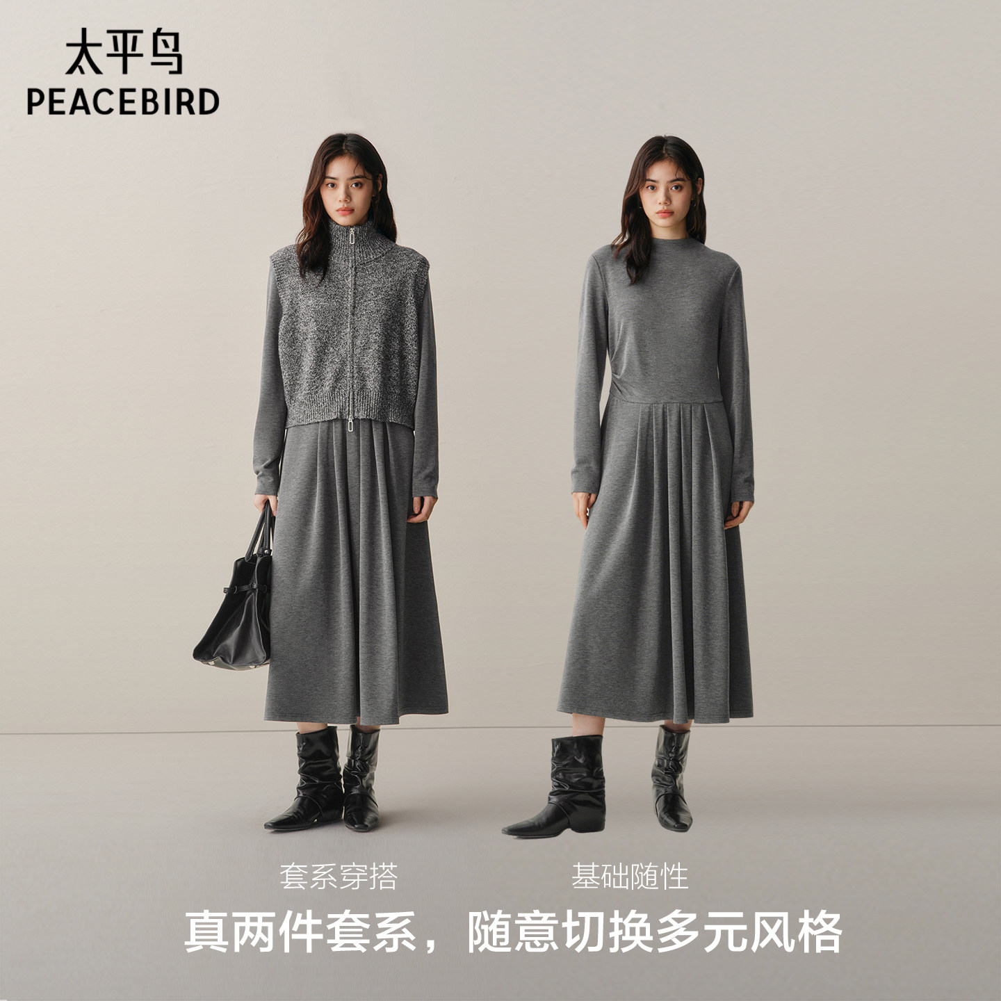 【商场同款】太平鸟绵羊毛混纺针织两件套连衣裙女品质A1FAF4314