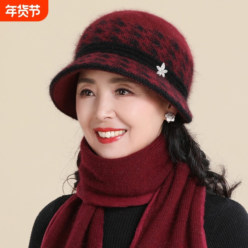 中老年人妈妈帽子女保暖老太太老人奶奶冬季针织毛线帽紫色红色