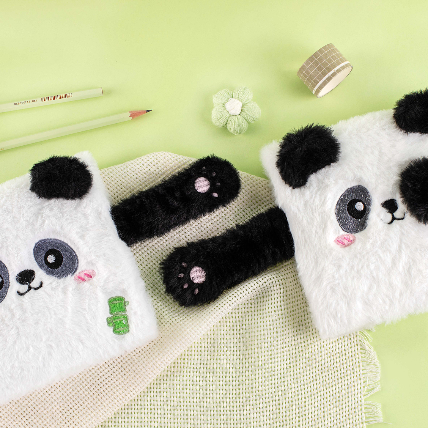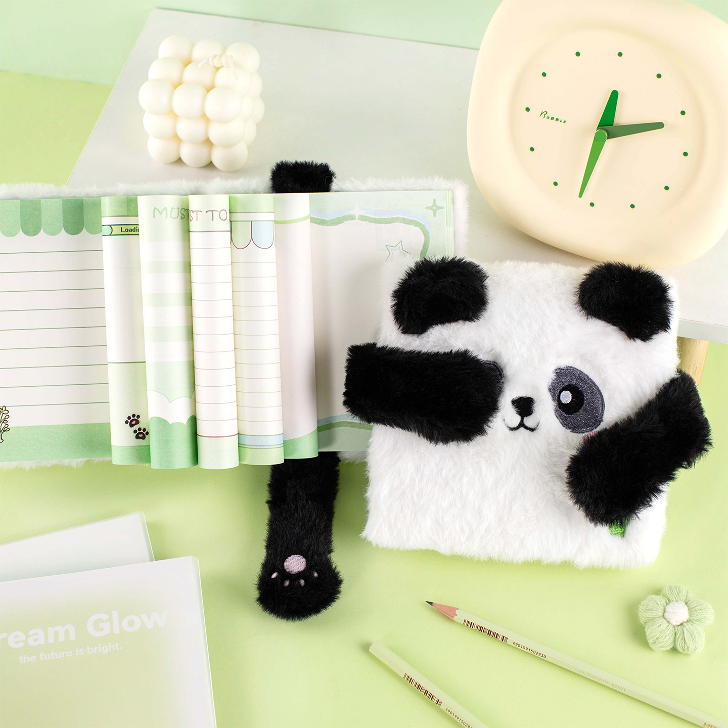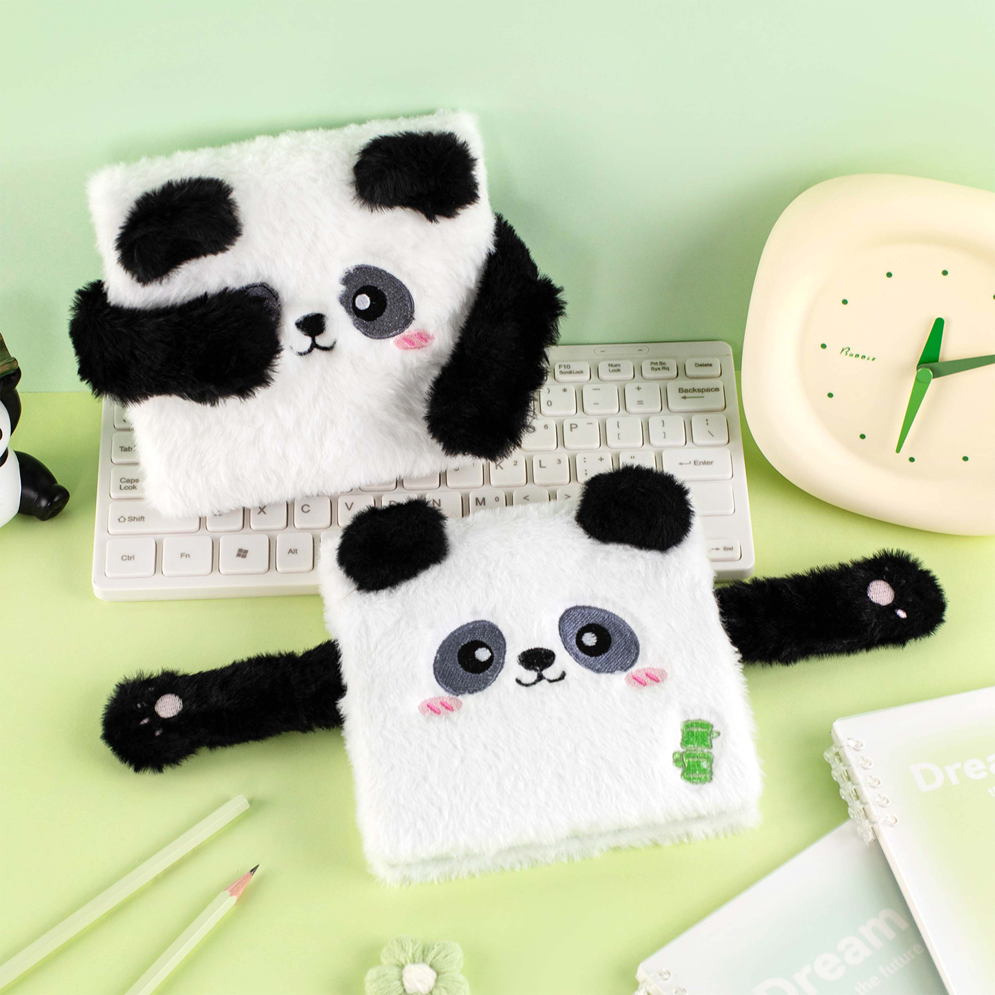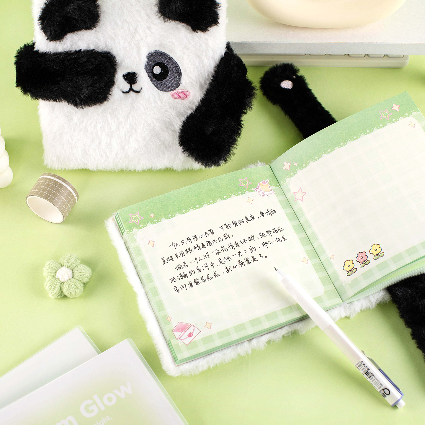 卡通熊猫胖达毛绒笔记本公仔手账本高颜值可爱记事日记本礼物本子