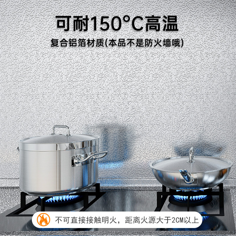 厨房防油贴纸防火耐高温灶台防水墙壁纸加厚自粘橱柜防潮铝箔锡纸